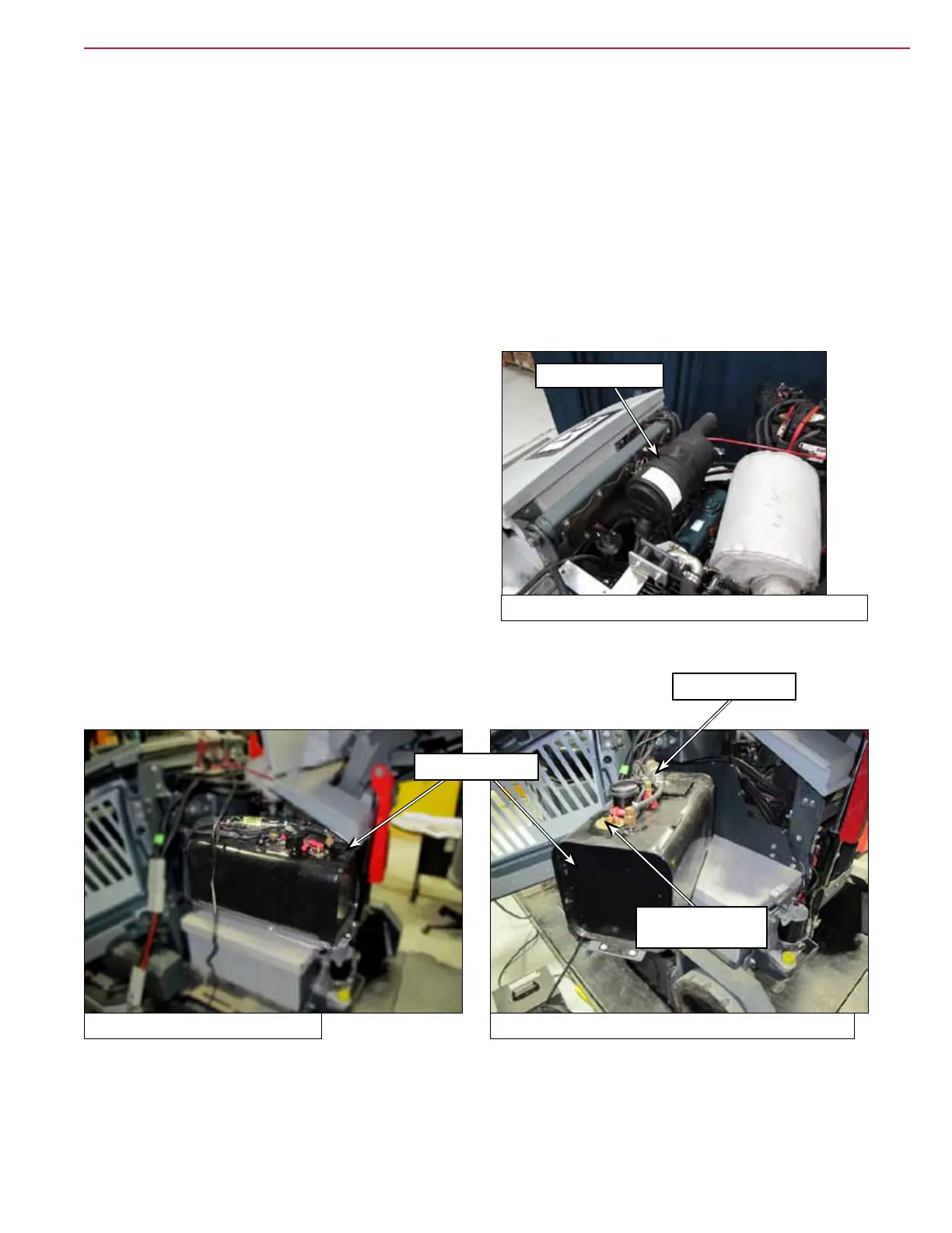 • Fuel lter - Front left engine compartment area. Mounted on frame between engine and hopper.