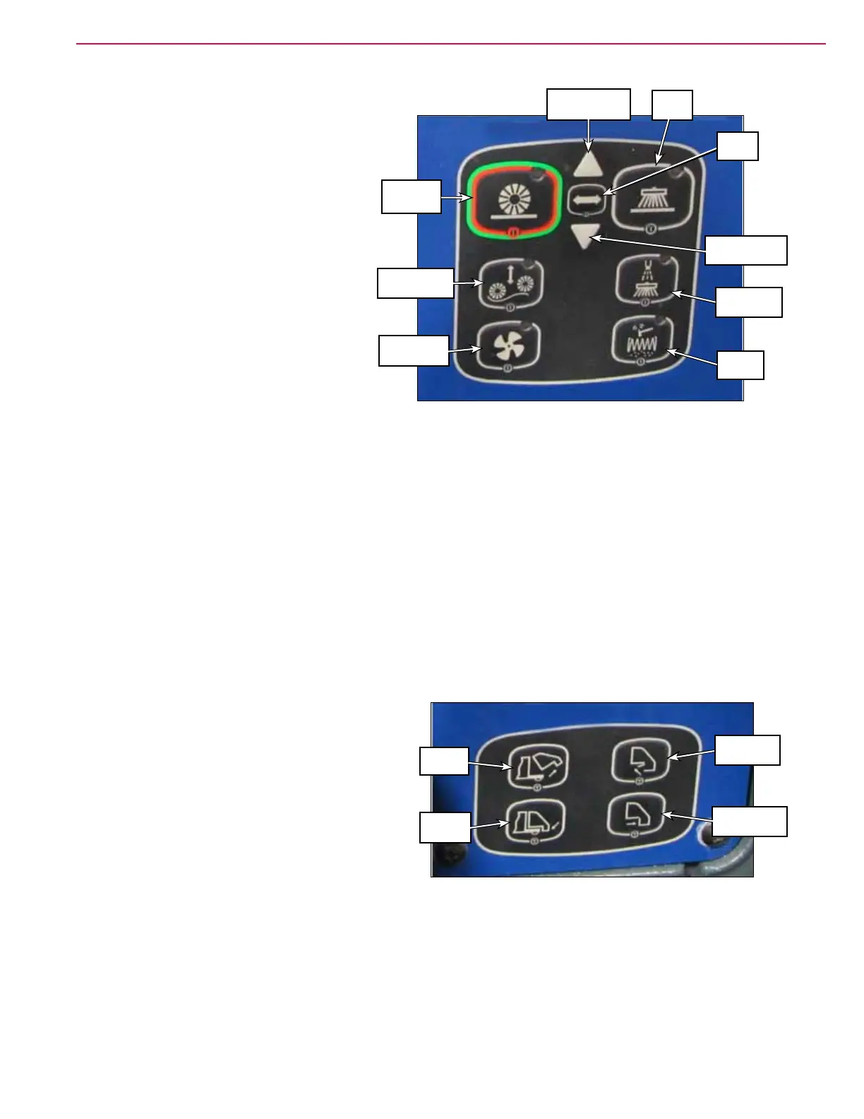 • Main Broom Float Button – the main broom actuator moves all the way down so the weight of the main