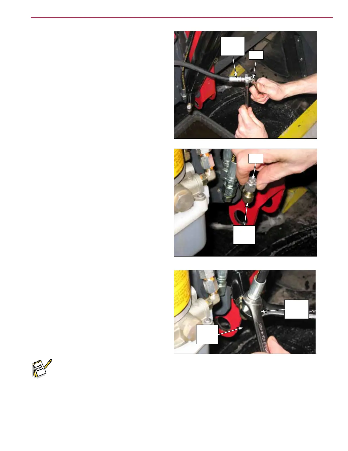 17. Loosen the Plug on the “UP” Hydraulic Hose,