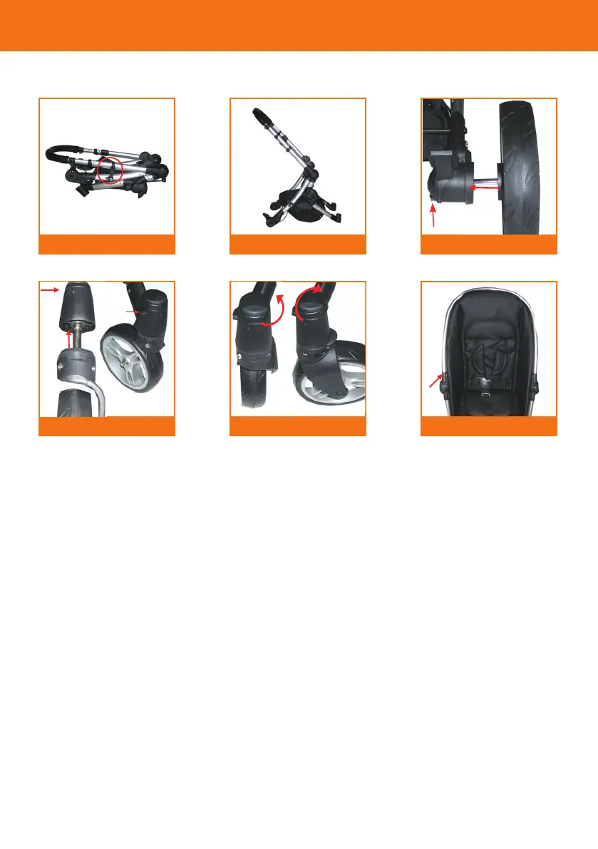 the swivel wheel function (6). Turn the release