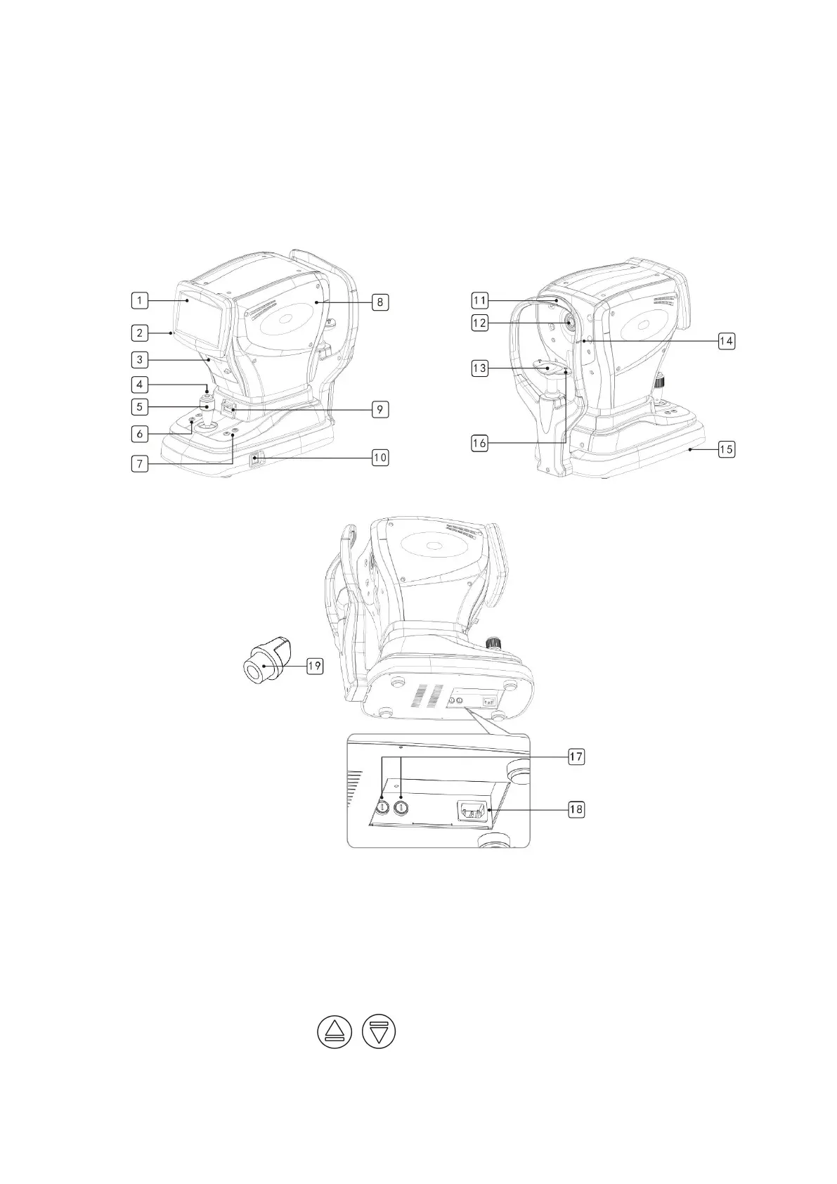 6.Chinrest up/down button( / ):Realize the function of lifting the chinrest.