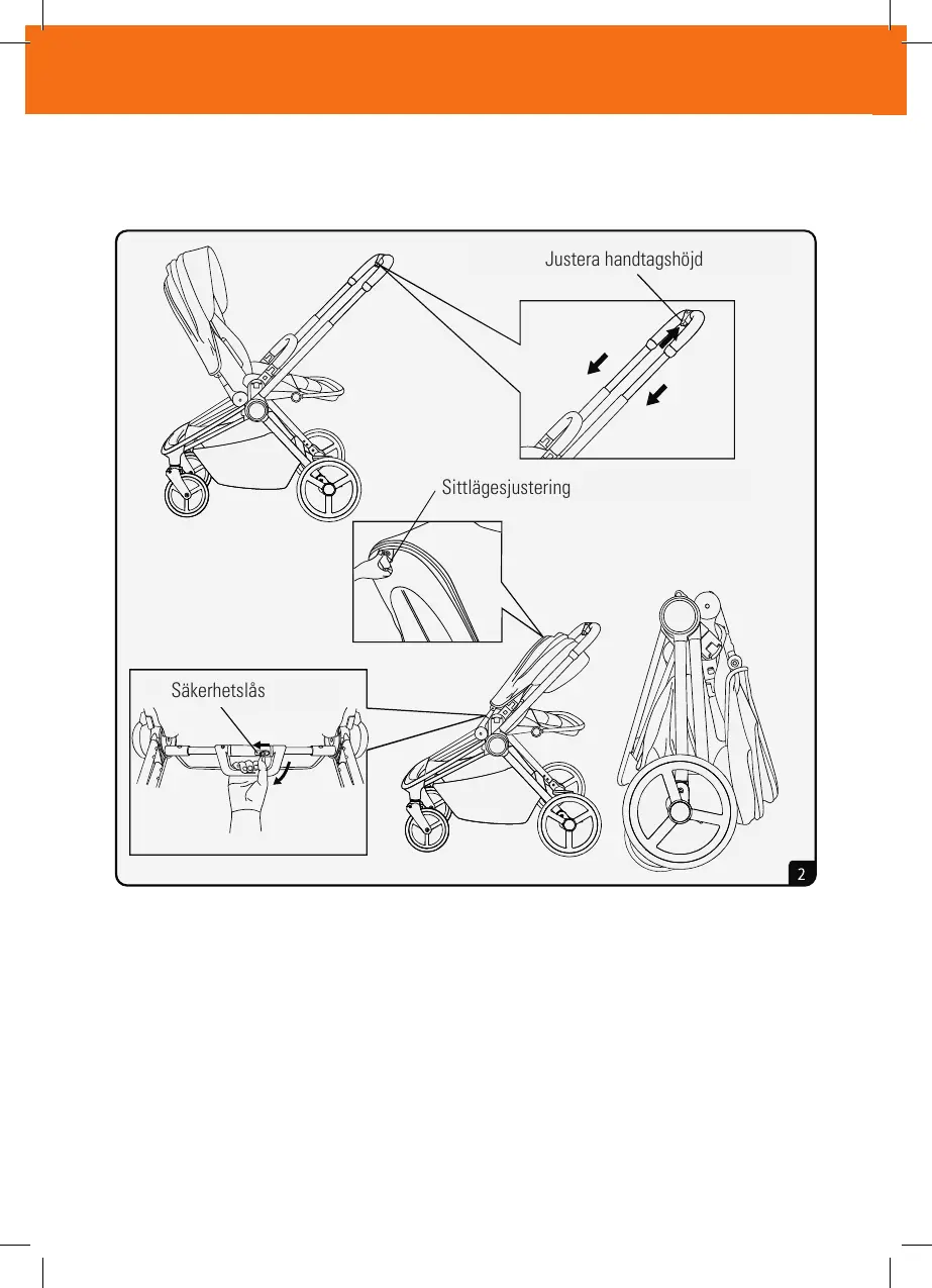 2. Omvänd ihopfällning: som bilden visar. när barnvagnen med sits används i omvänd riktning.
