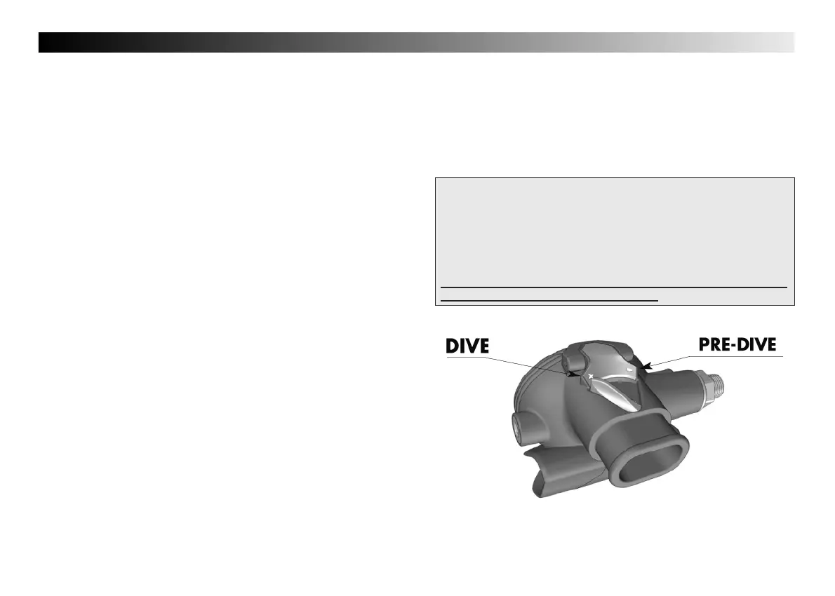 lever in pre-dive (-) mode when not using the regulator;