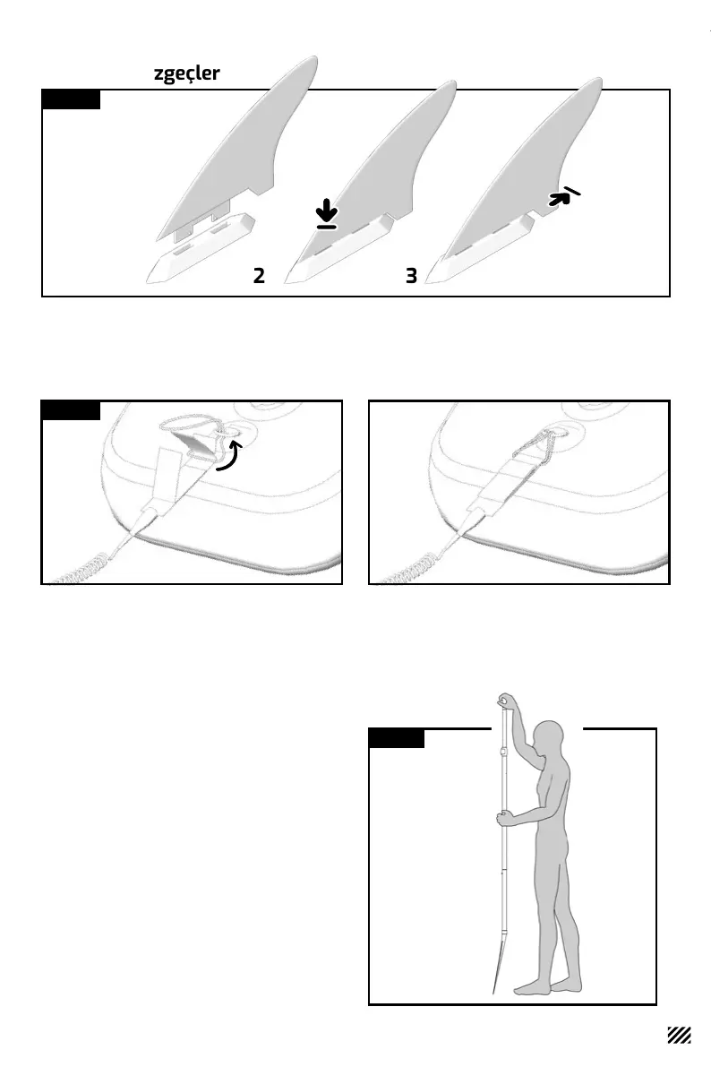 Yüzgeci deliklerde ortalayın (Şek. 1) ve tabana yerleştirin (Şek. 2) yüzgeci gidebildiği yere kadar