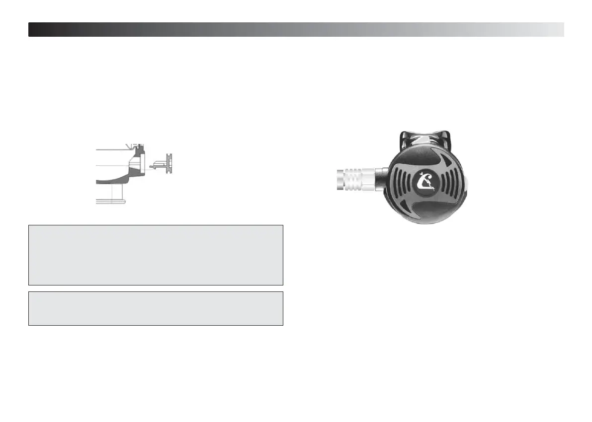diver inhales from the mouthpiece, causing a slight vacuum insi-
