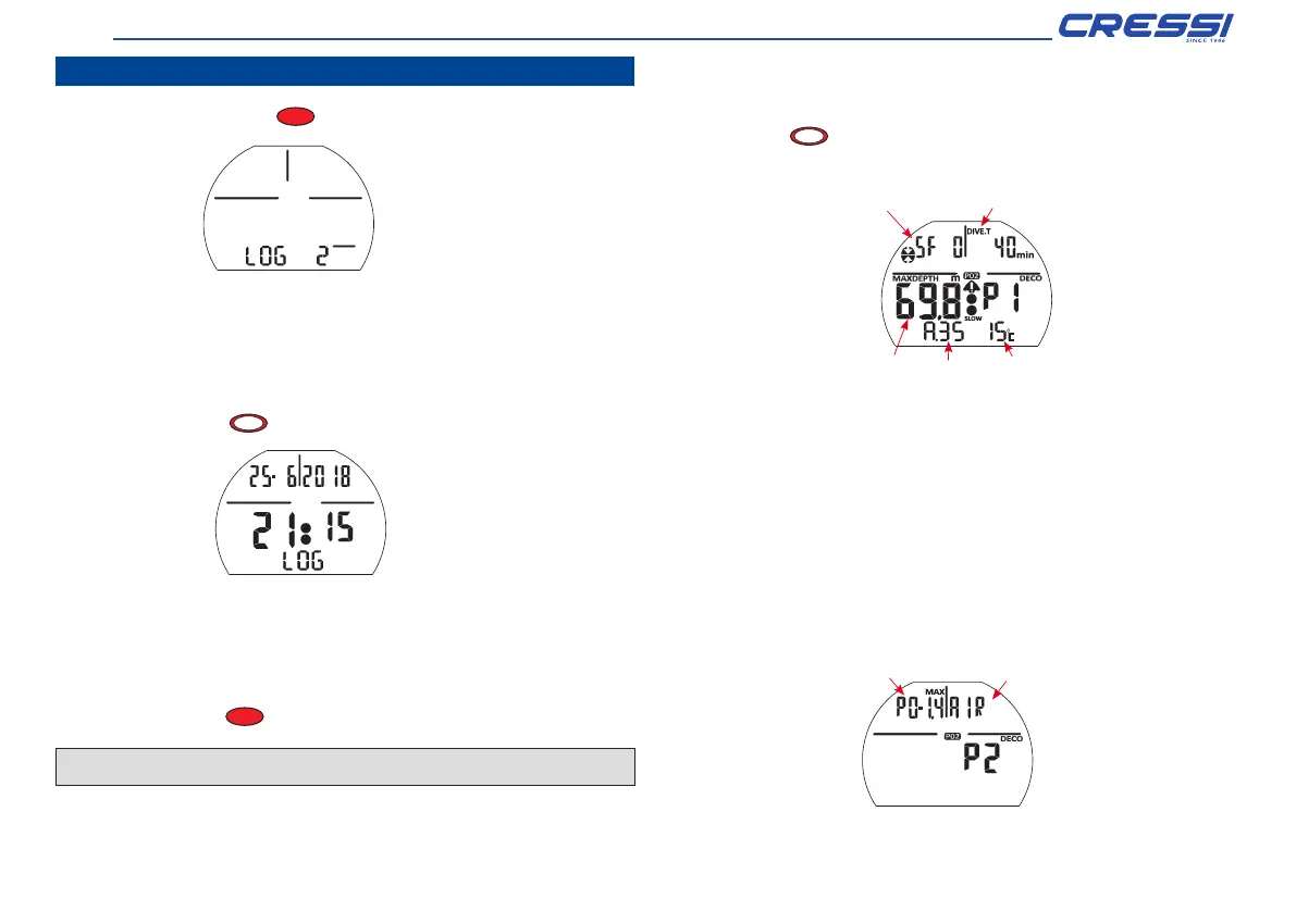 For dives in NITROX, FREE or GAGE modes, the corresponding icon will be