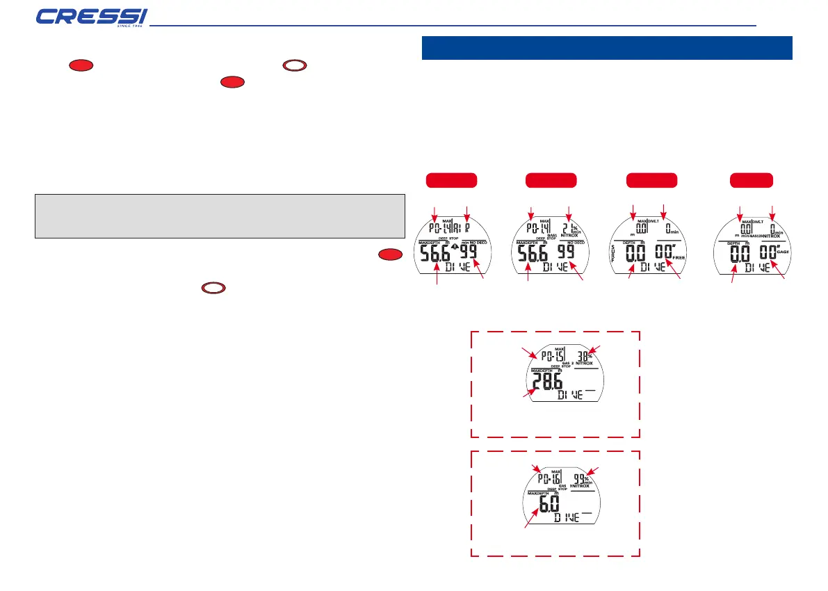 Before diving, it is veryimportantto set the computer to dive, and check the