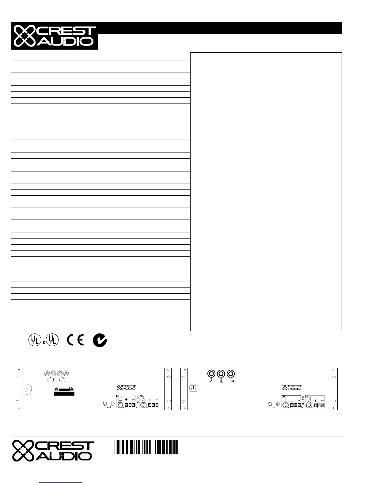many other countries). Crest Audio reserves the right to make improvements in manufacturing or design which may affect specification. Crest Audio specification literature is available in