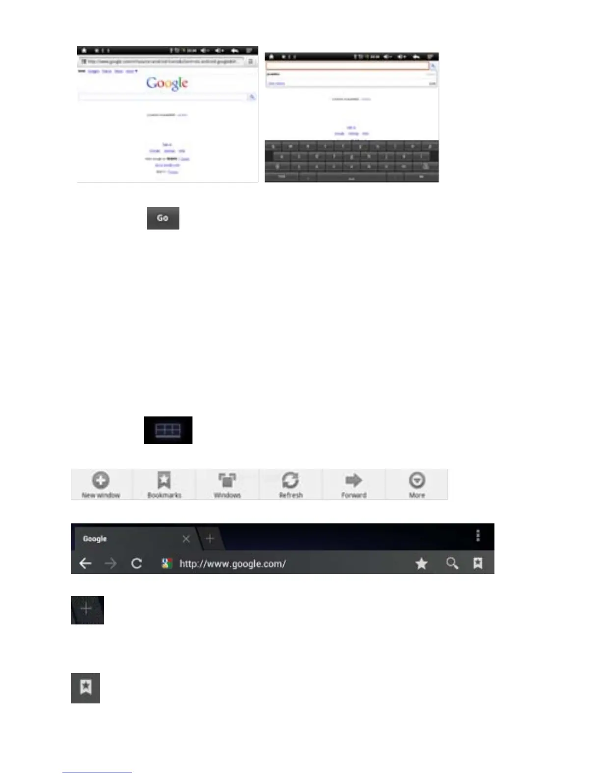Druk op na het invoeren van een webadres om de