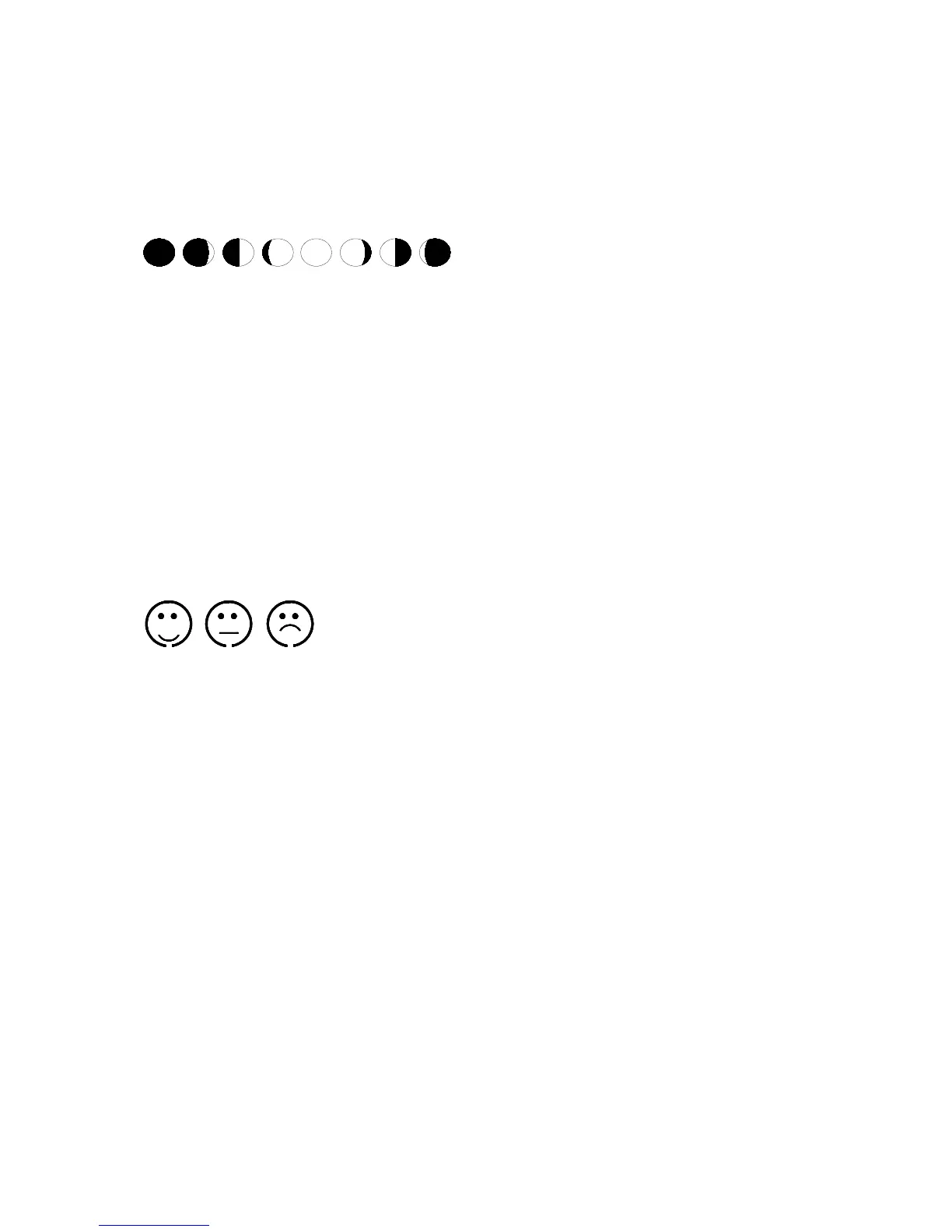 D: Zunehmender Halbmond ¾ E: Vollmond F: Abnehmender Halbmond 3/4