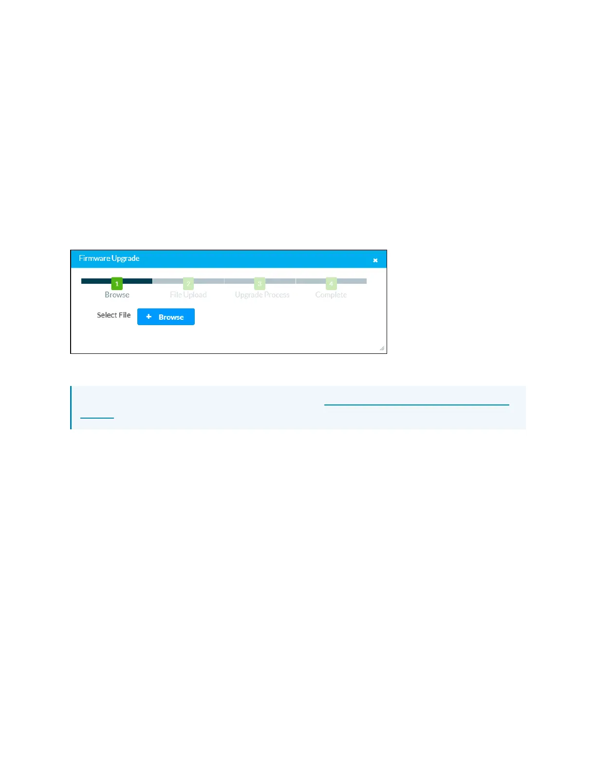 Select the x button to close the Firmware Upgrade dialog box at any time during the upgrade