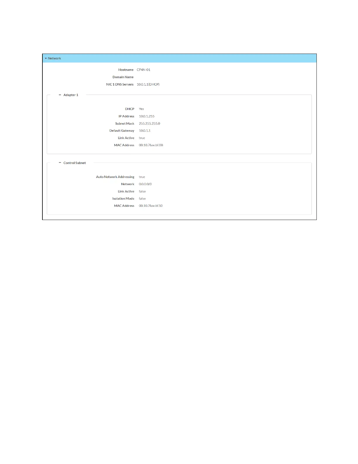 NIC 1 DNS Servers: The DNS (domain name server) addresses used to resolve the control