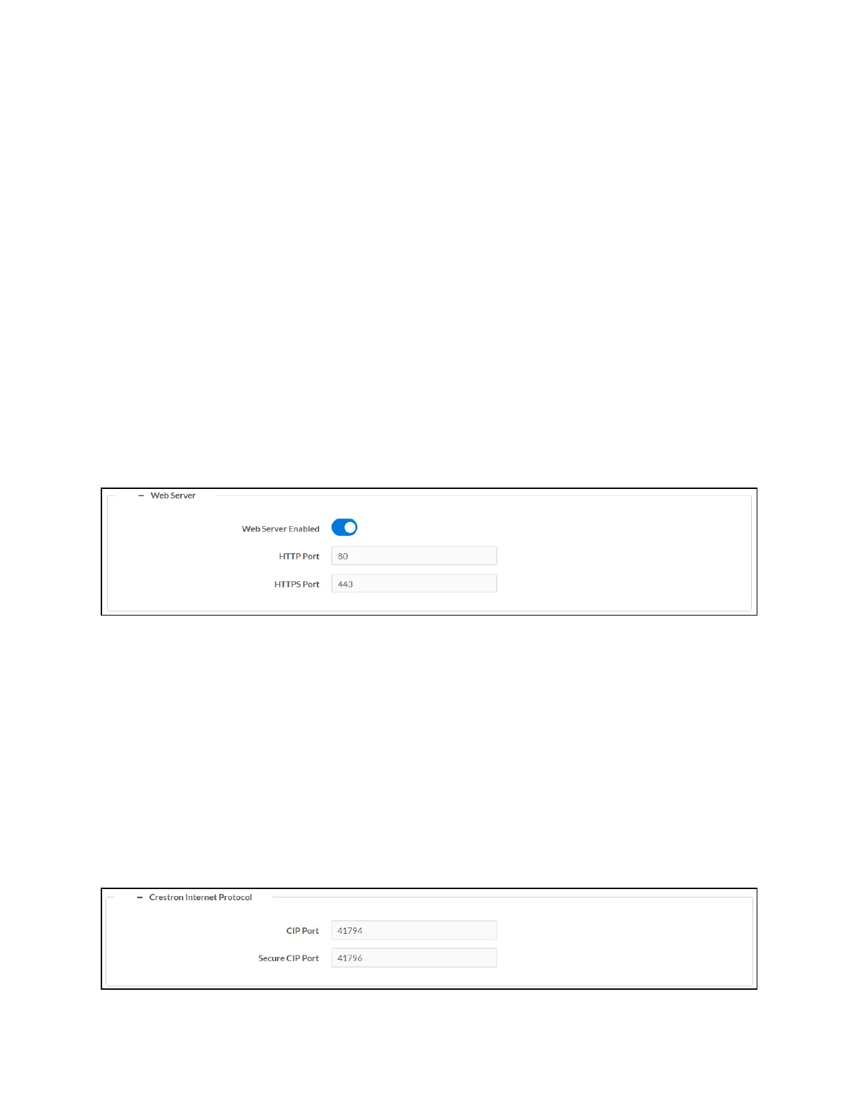 If Web Server Enabled is turned on, enter an HTTPport to use for the web server in the