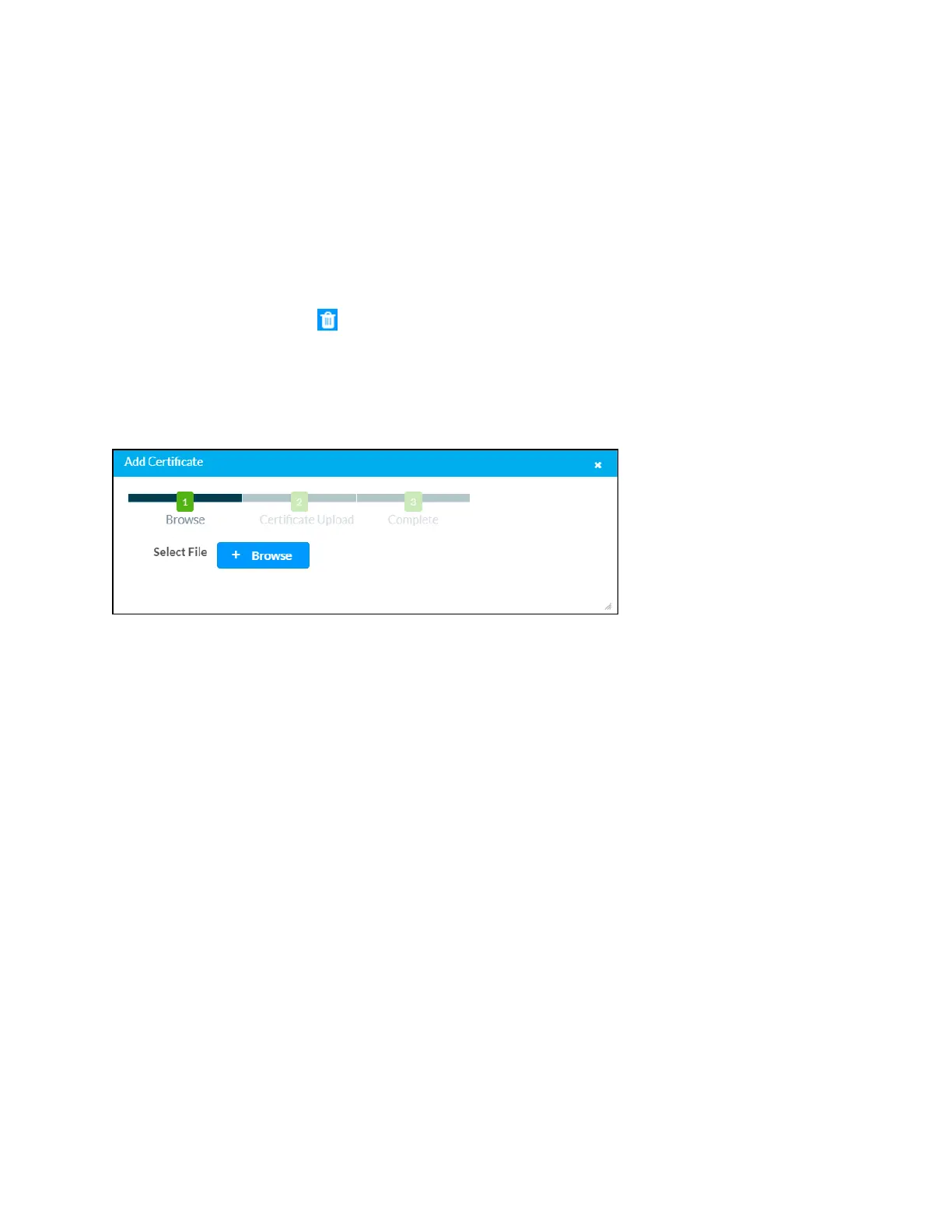 Select the x button to close the Add Certificate dialog box at any time during the upload process.