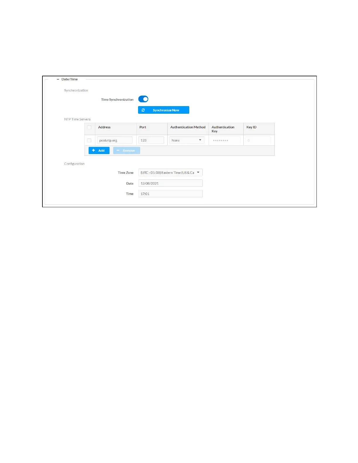 Time Synchronization: Turn on the toggle to use time synchronization via NTP (Network
