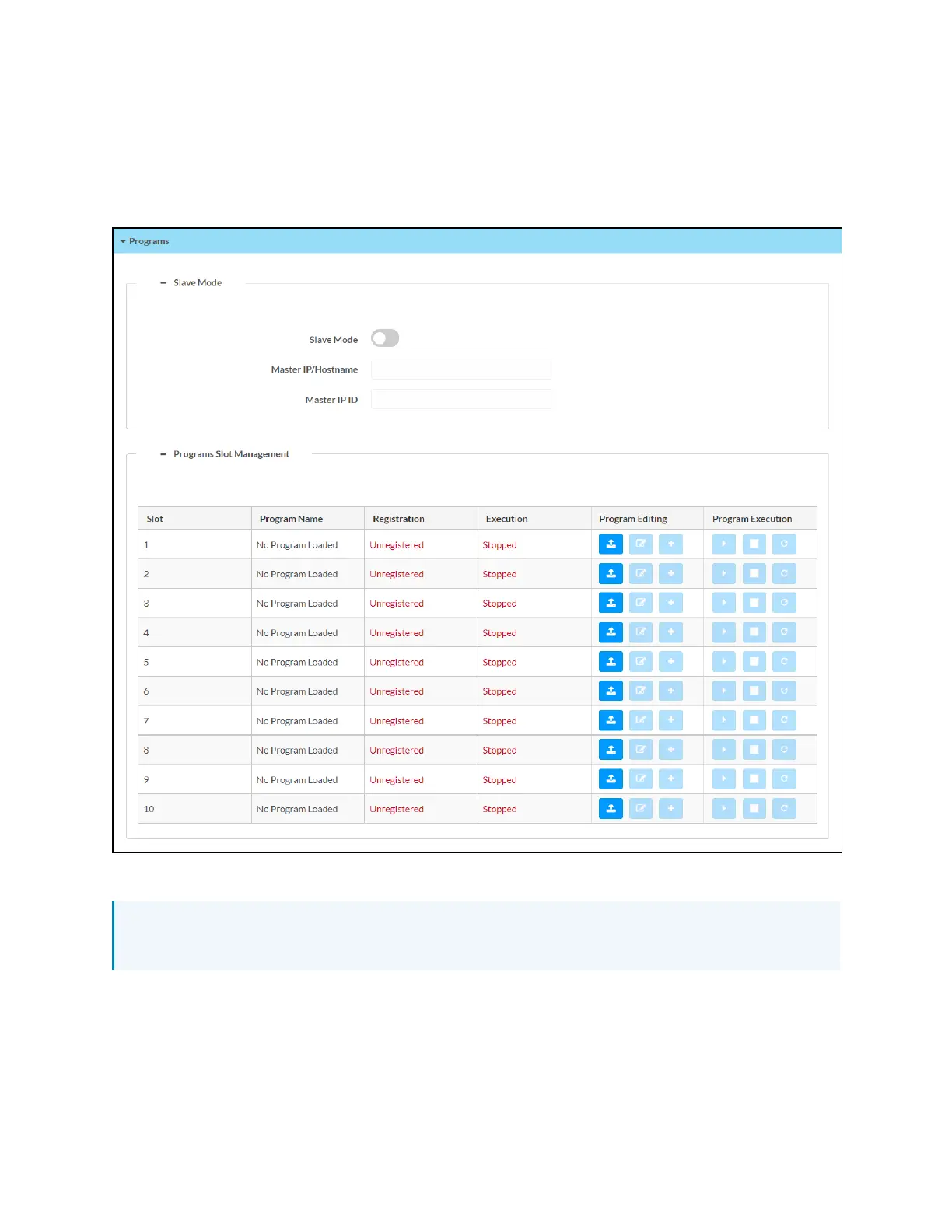 Turn the Slave Mode toggle on to run the control system in subordinate mode. If this