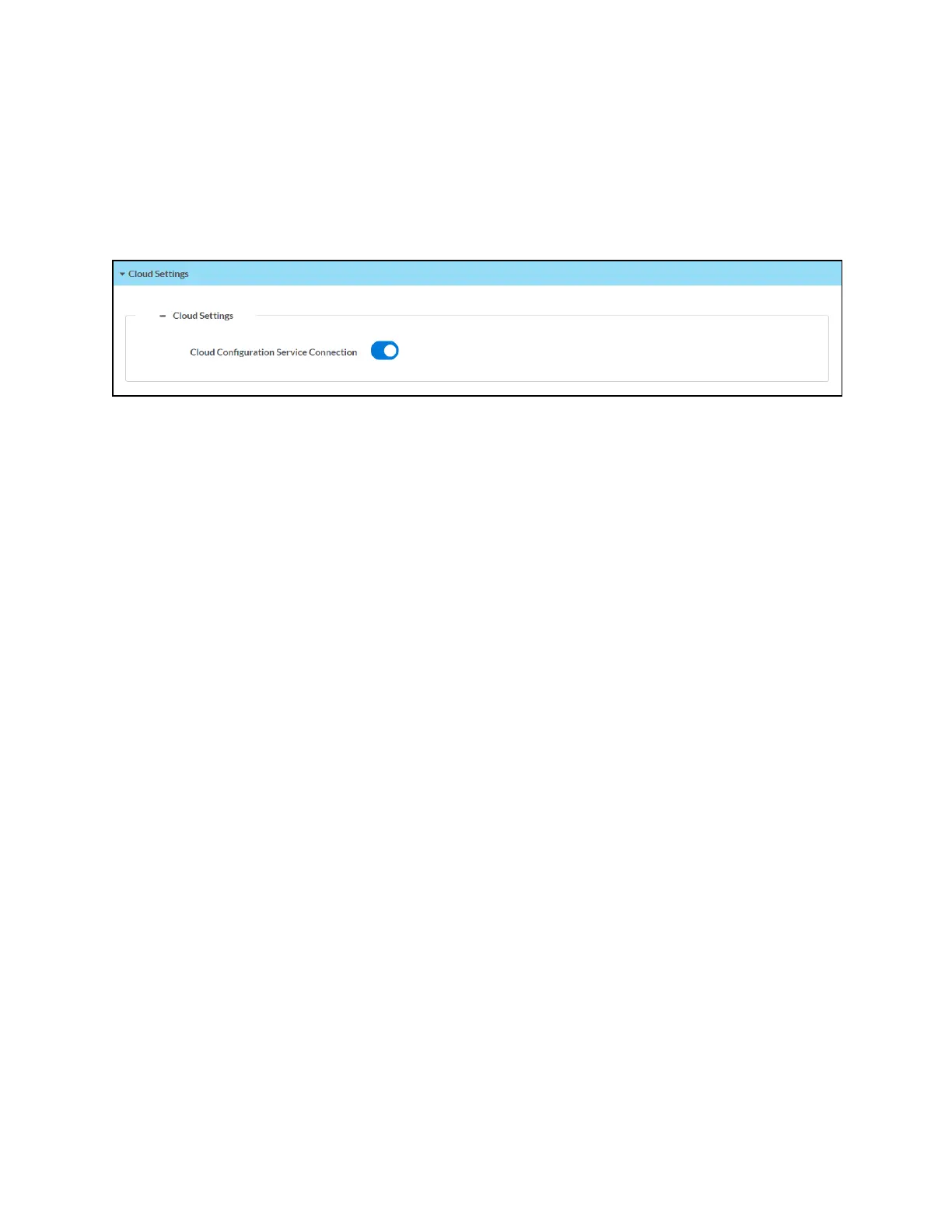 Turn on the Cloud Configuration Service Connection to allow a connection between control
