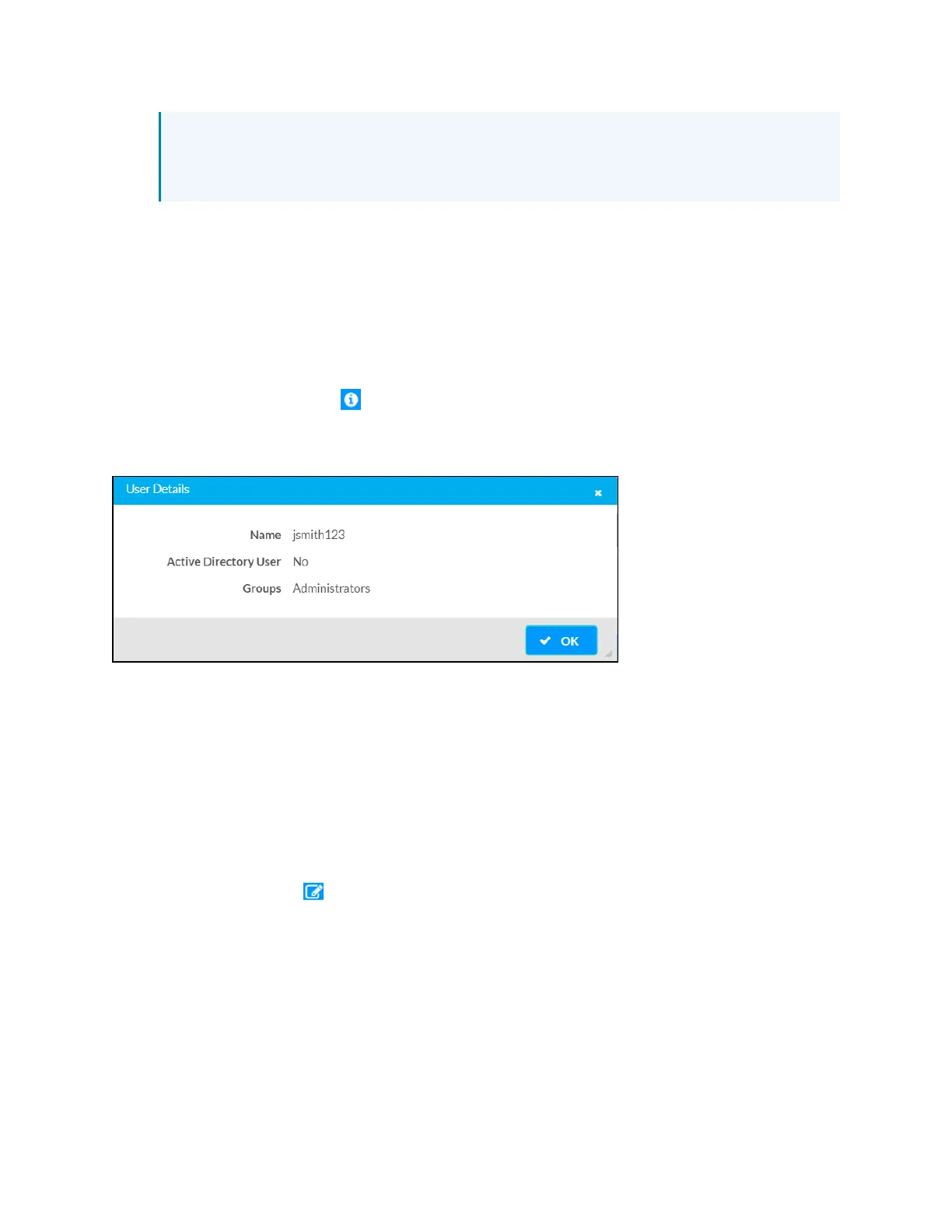 Select the editing button in the Actions column to edit settings for the selected user. The