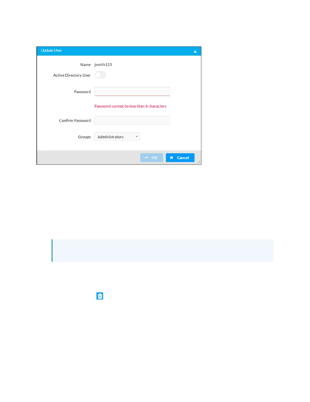Select OK to save any changes and to return to the Users selections. Select Cancel to cancel any