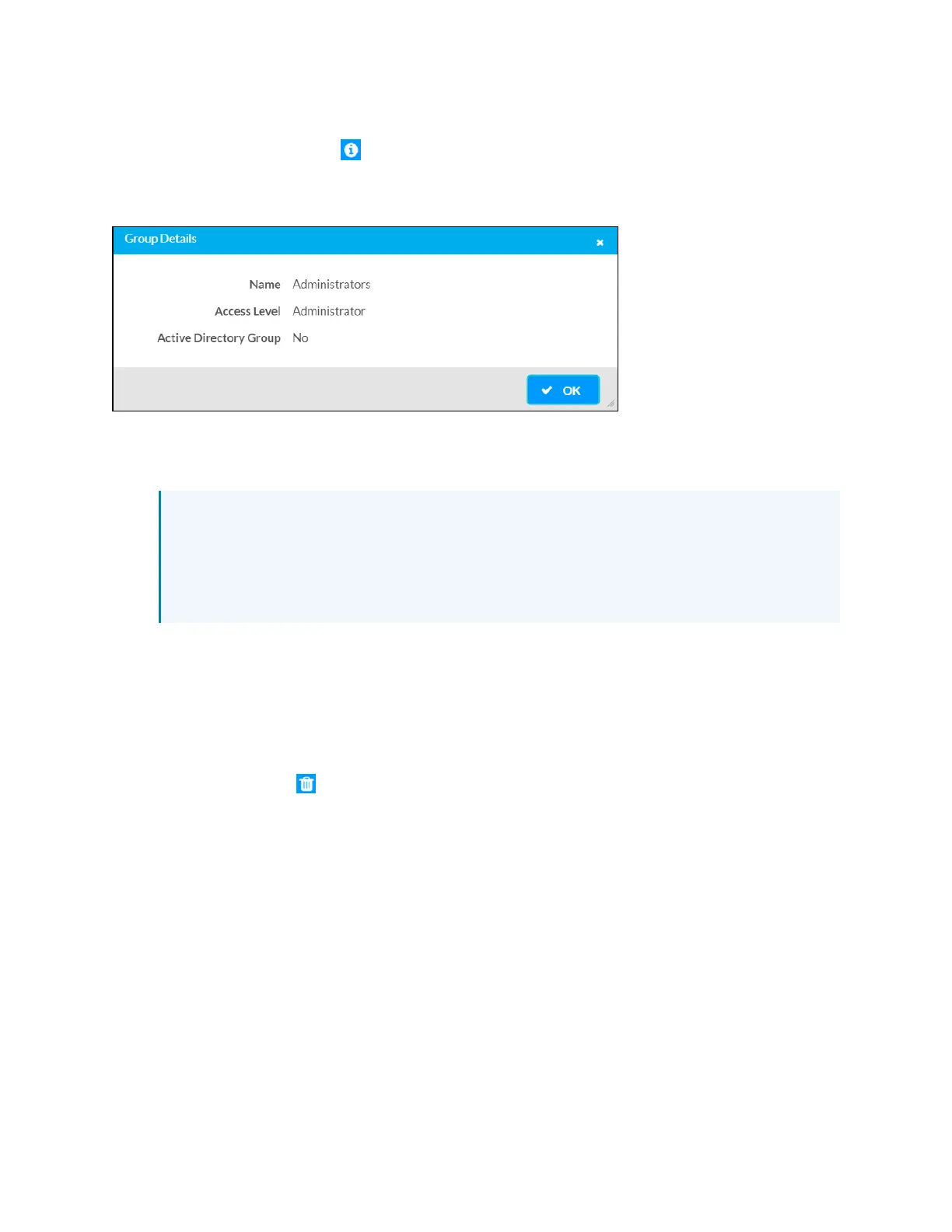 A pop-up dialog box is displayed asking whether the group should be deleted. Select Yes to