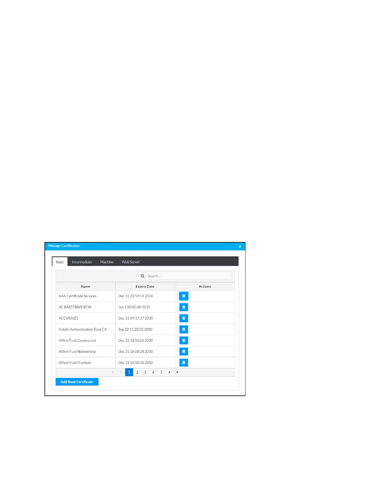 Select Manage Certificates from the Action menu to add or remove CAs from the list. The