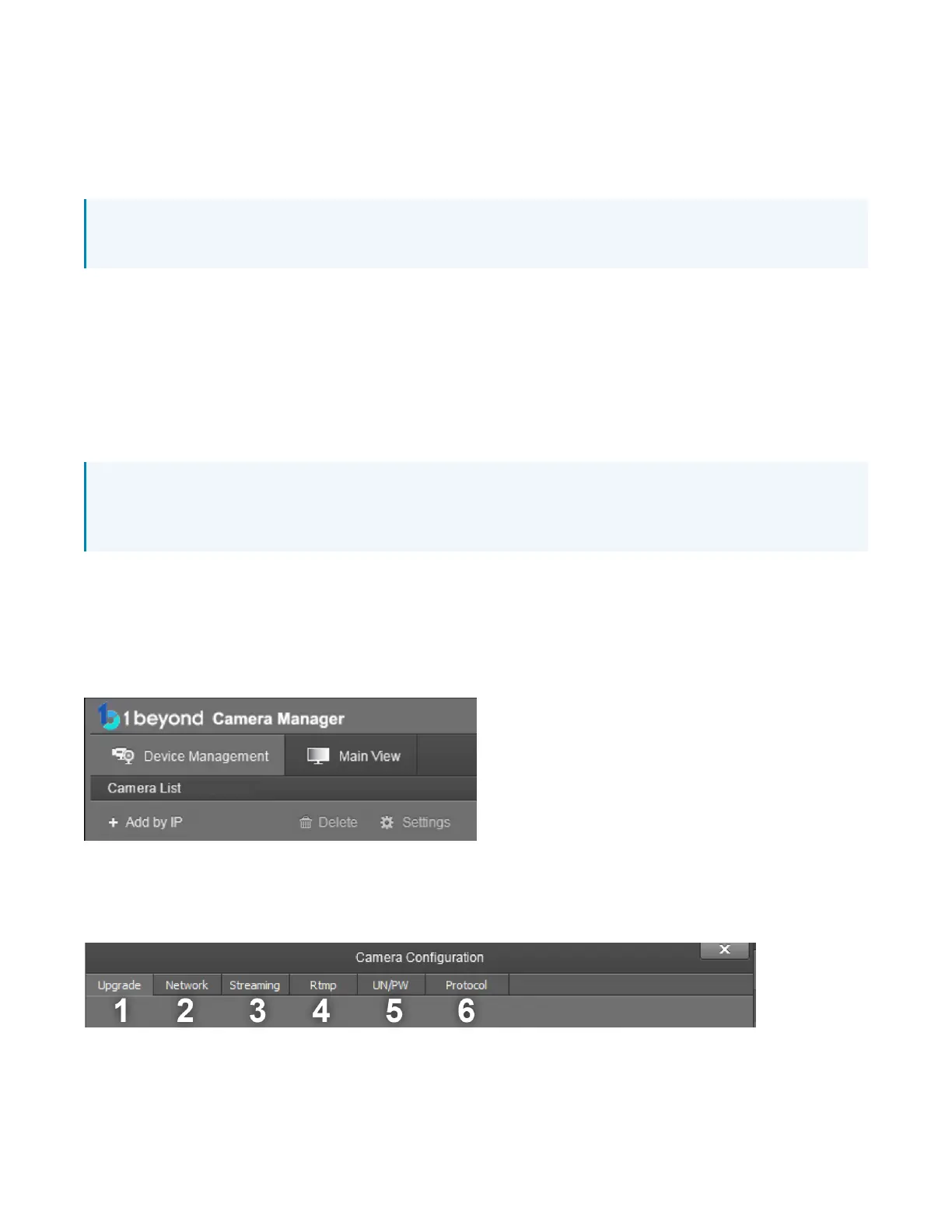 Once a camera has been added to the 1 BeyondCamera Manager software as described in Device