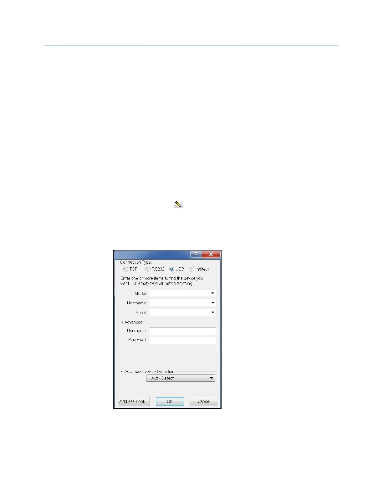 Connection Type Dialog Box - USB