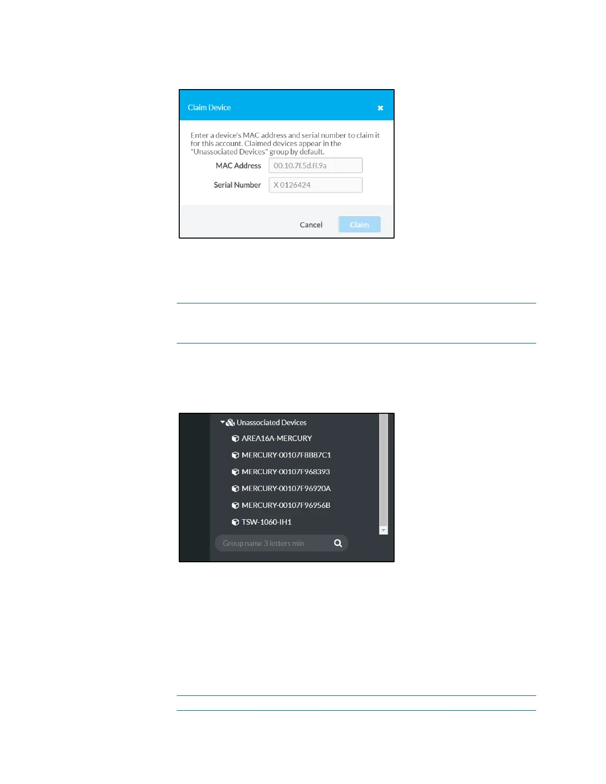 6. Click X to close the dialog box. The hostname of the claimed device is
