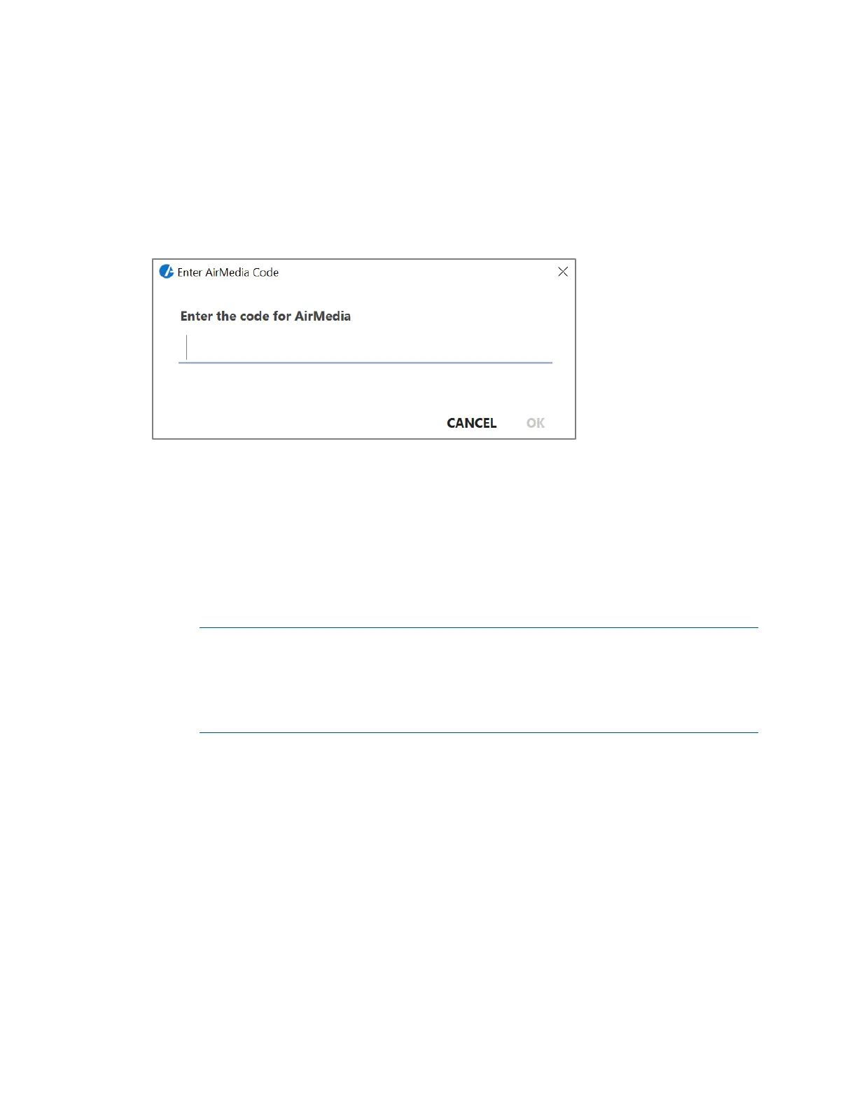 Enter AirMedia Code dialog box. The code is only four digits, and is easy for the user