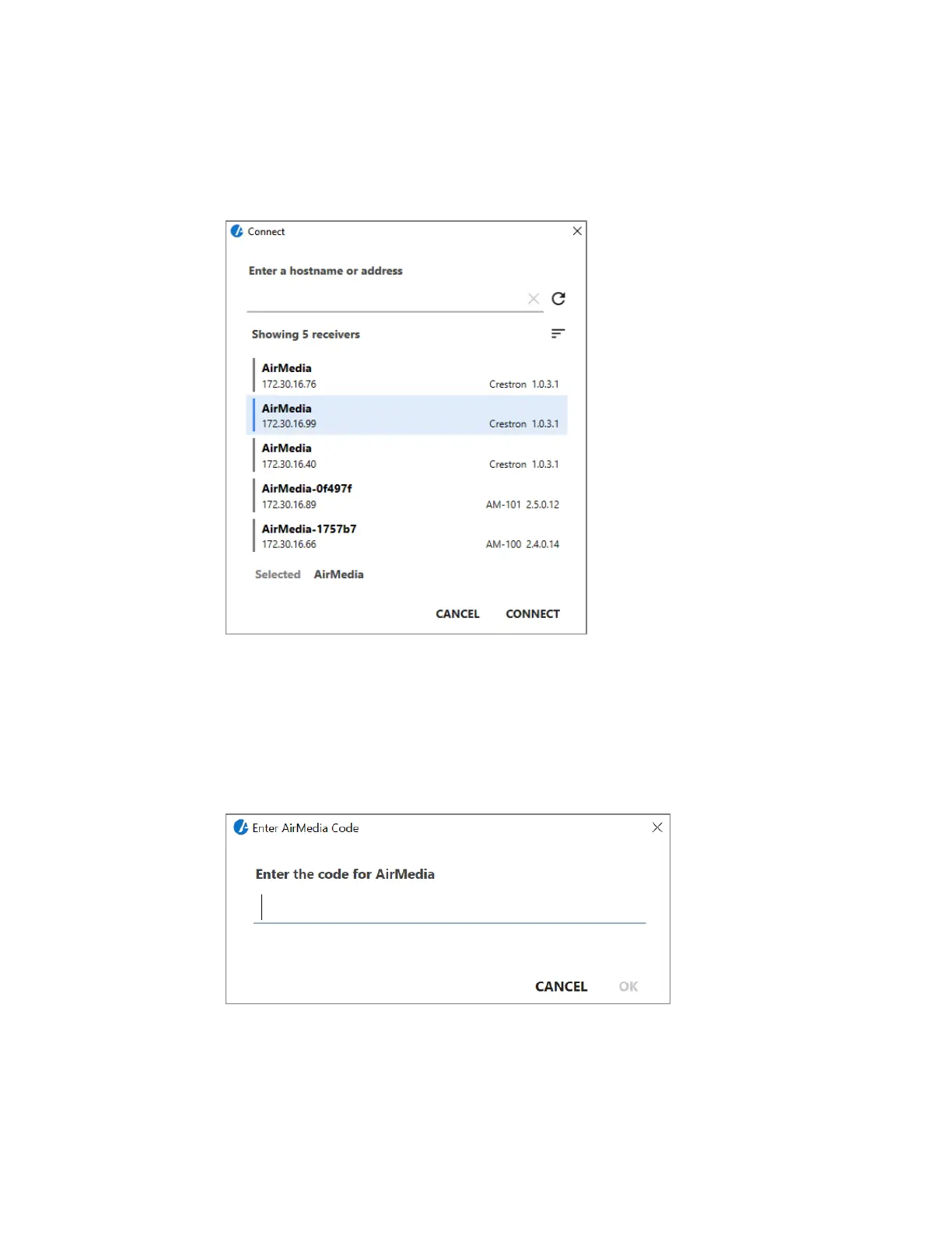 1. Launch AirMedia. The Connect dialog box is displayed.