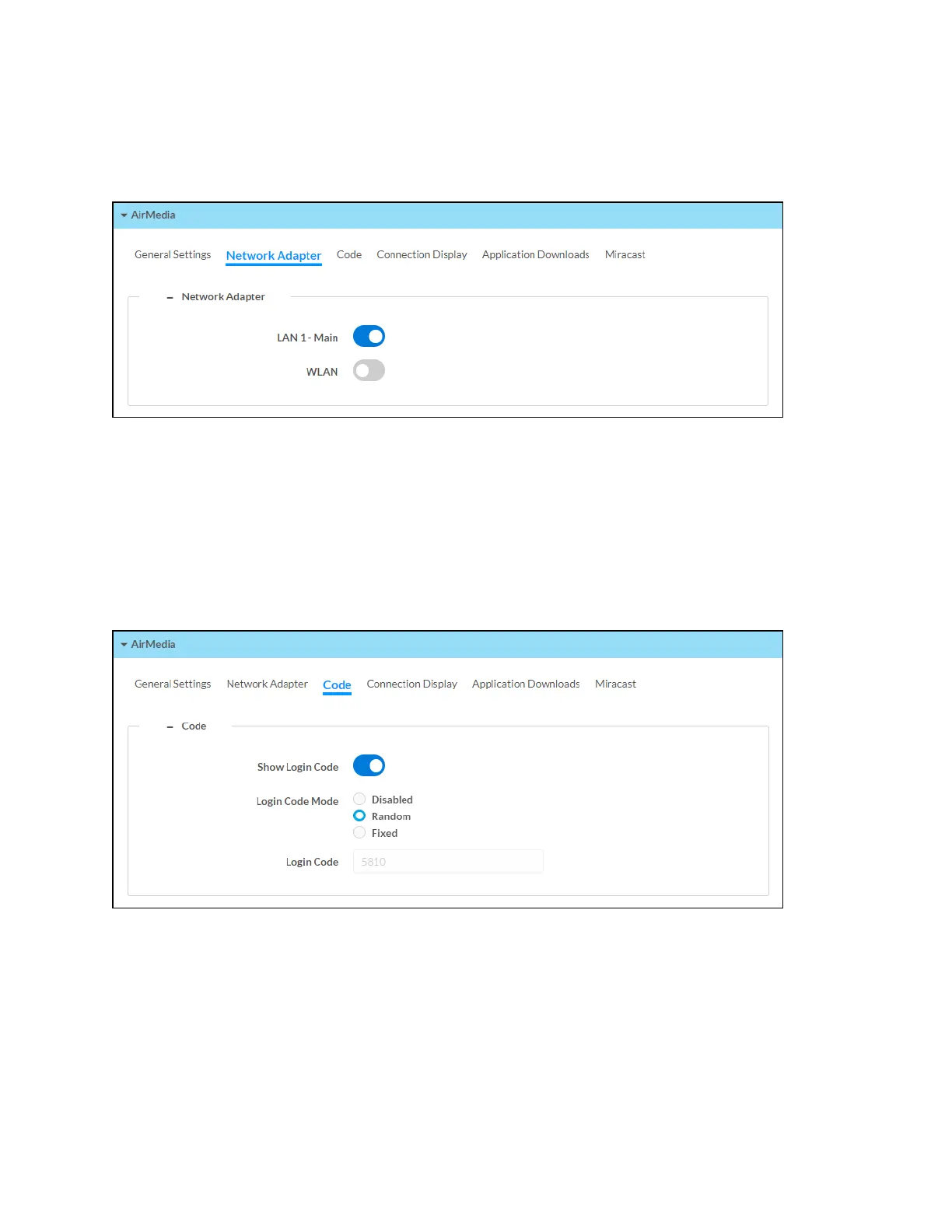 LAN 1 - Main: Allow AirMedia connections from the local area network.