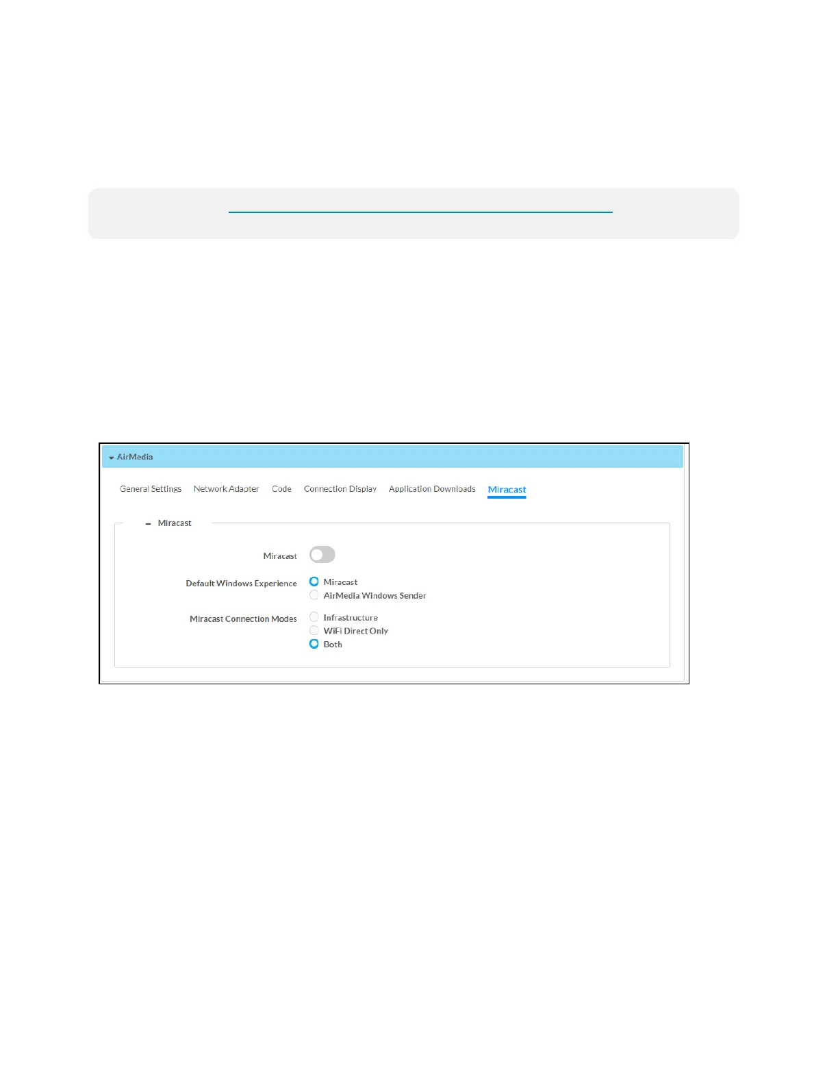 Default Windows Experience: Select one of the radio buttons (Miracast or AirMedia