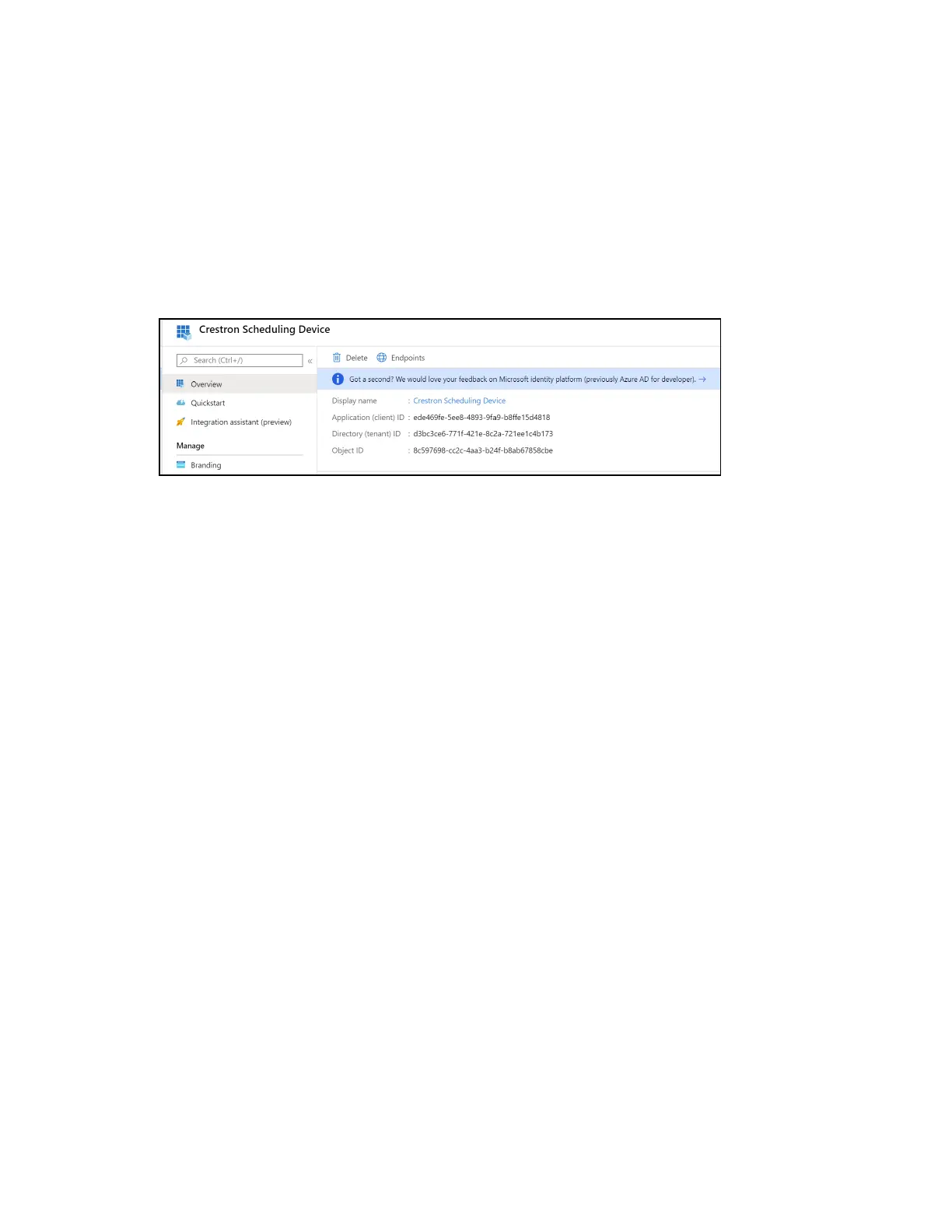 3. Select Overview from the navigation menu. Information about the Azure app is provided.