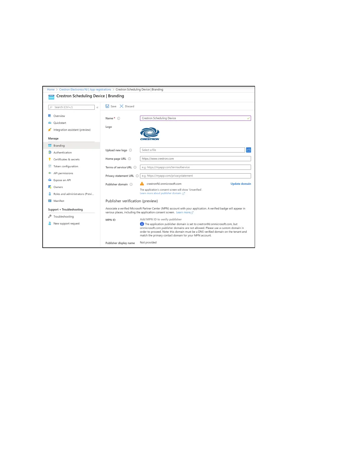 Publisher domain:Sets the process that must be completed to verify ownership of the