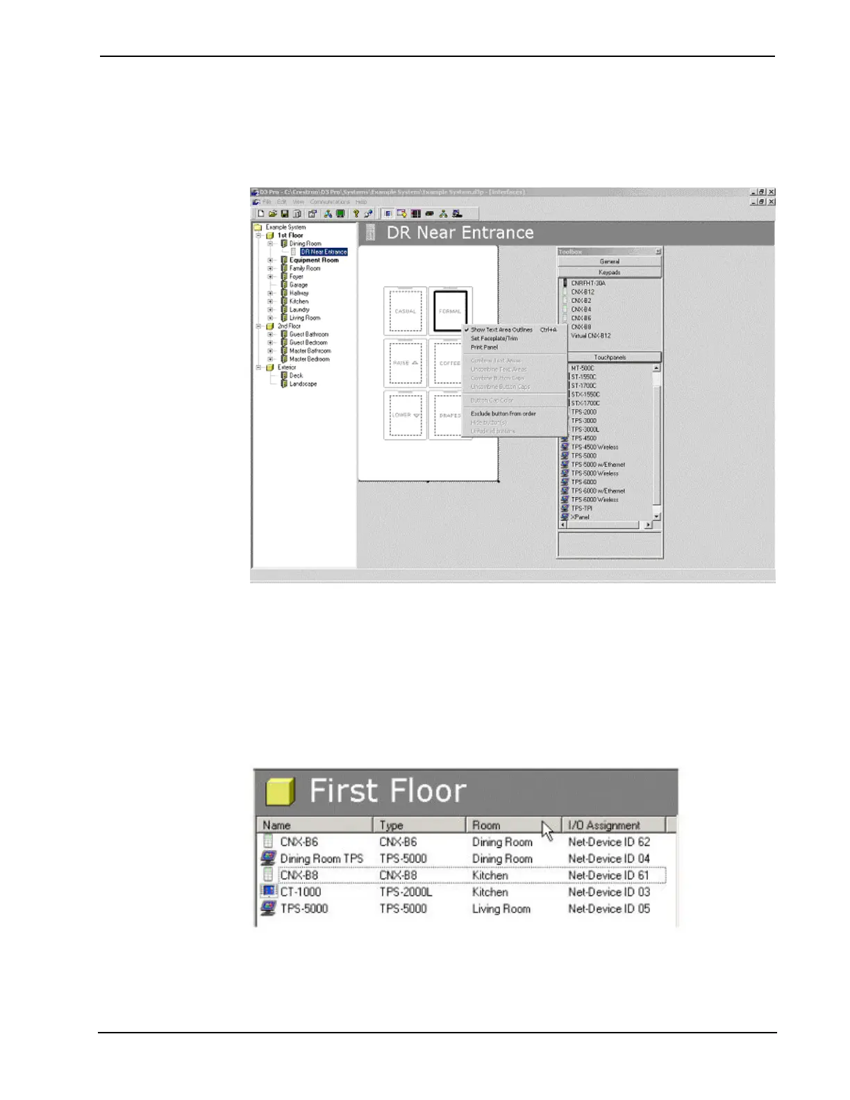 If you select a room from the system tree on the left side of the D3 Pro screen, the