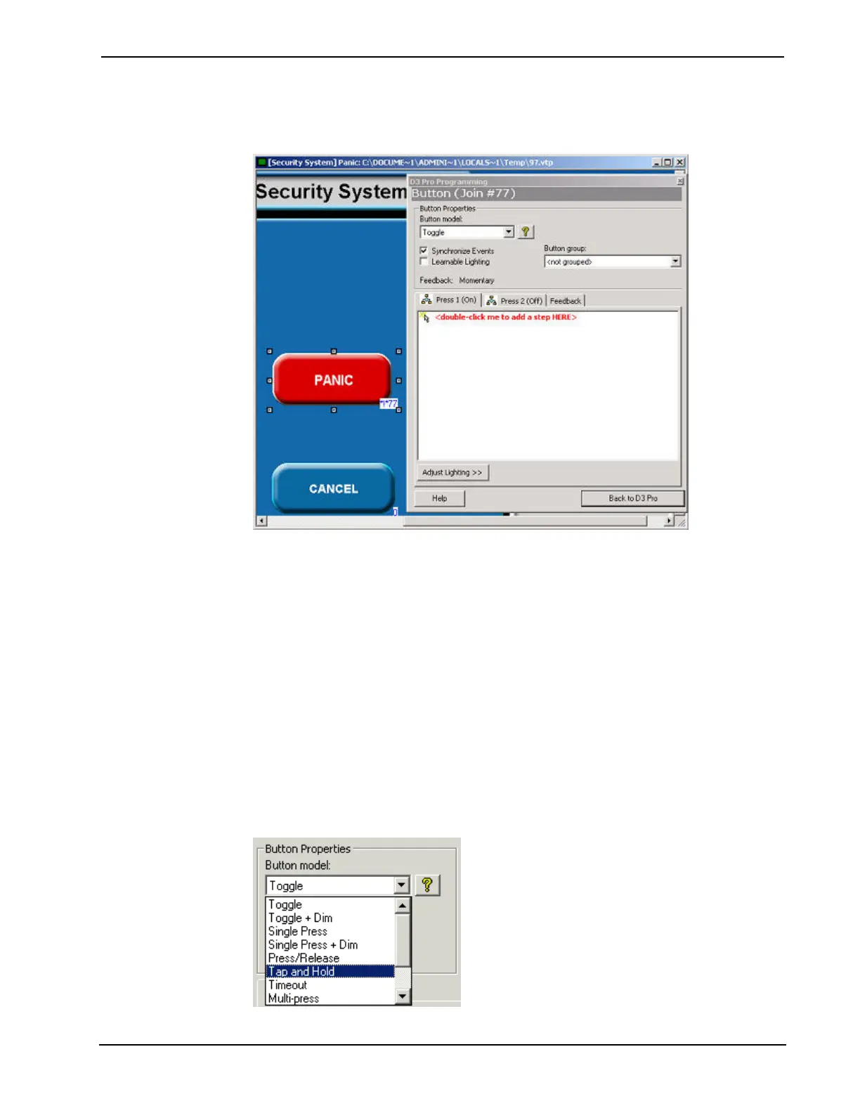 When you open VTPro-e, you can select a button and adjust its programming using