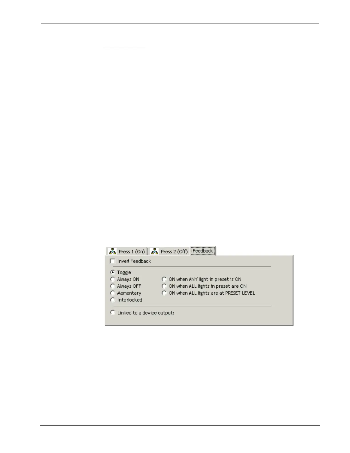 programming is necessary to simulate the toggle feedback behavior. For this reason a