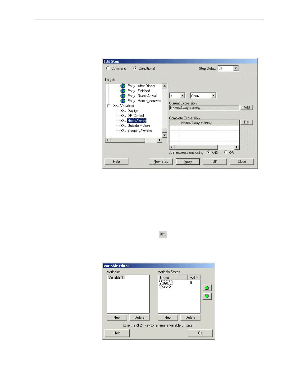 windows, one for defined Variables, and the other for Variable States. Click