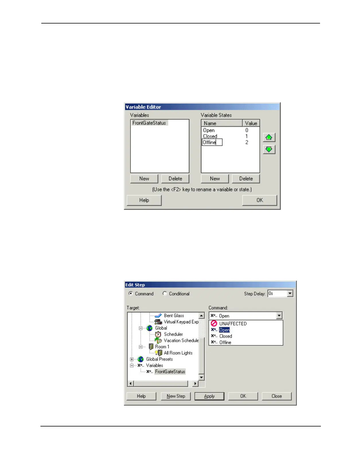 For example, the name of the variable might be FrontGateStatus, and the