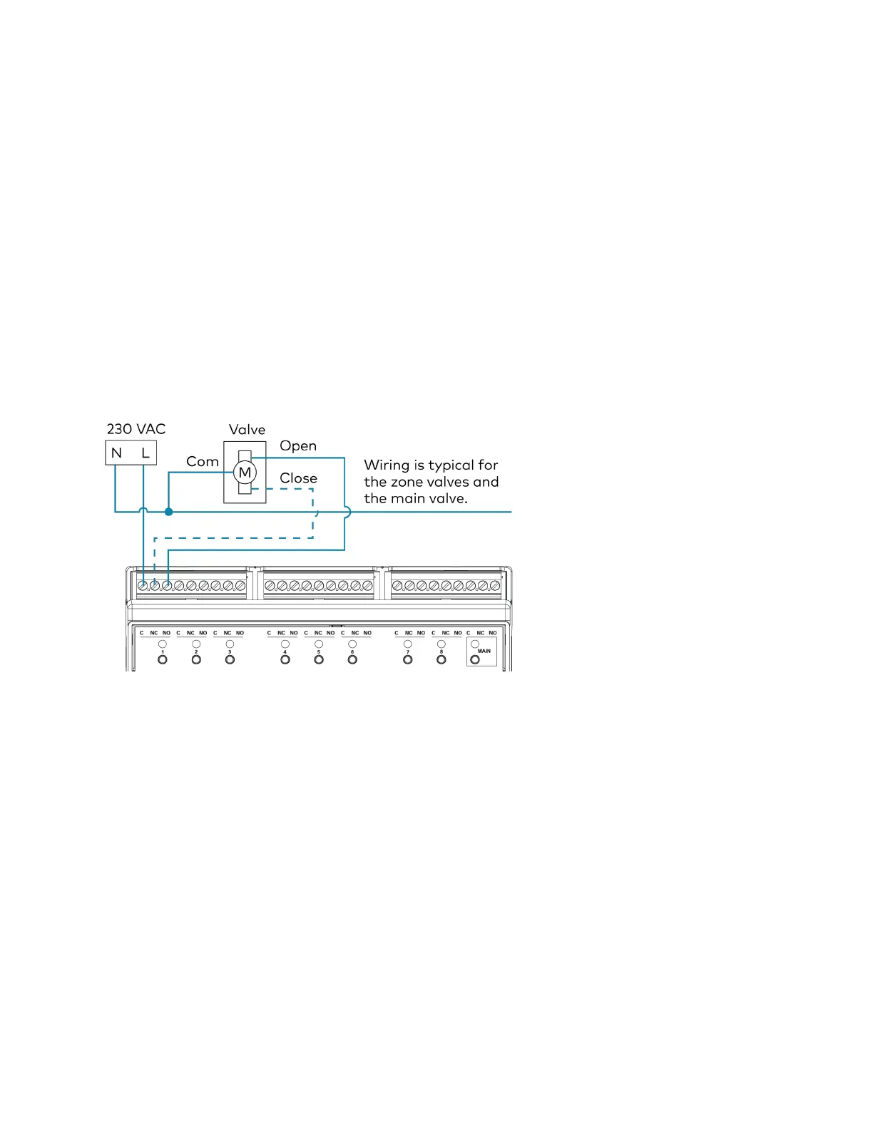 Zone Valve and Main Valve connections (1-8, MAIN)