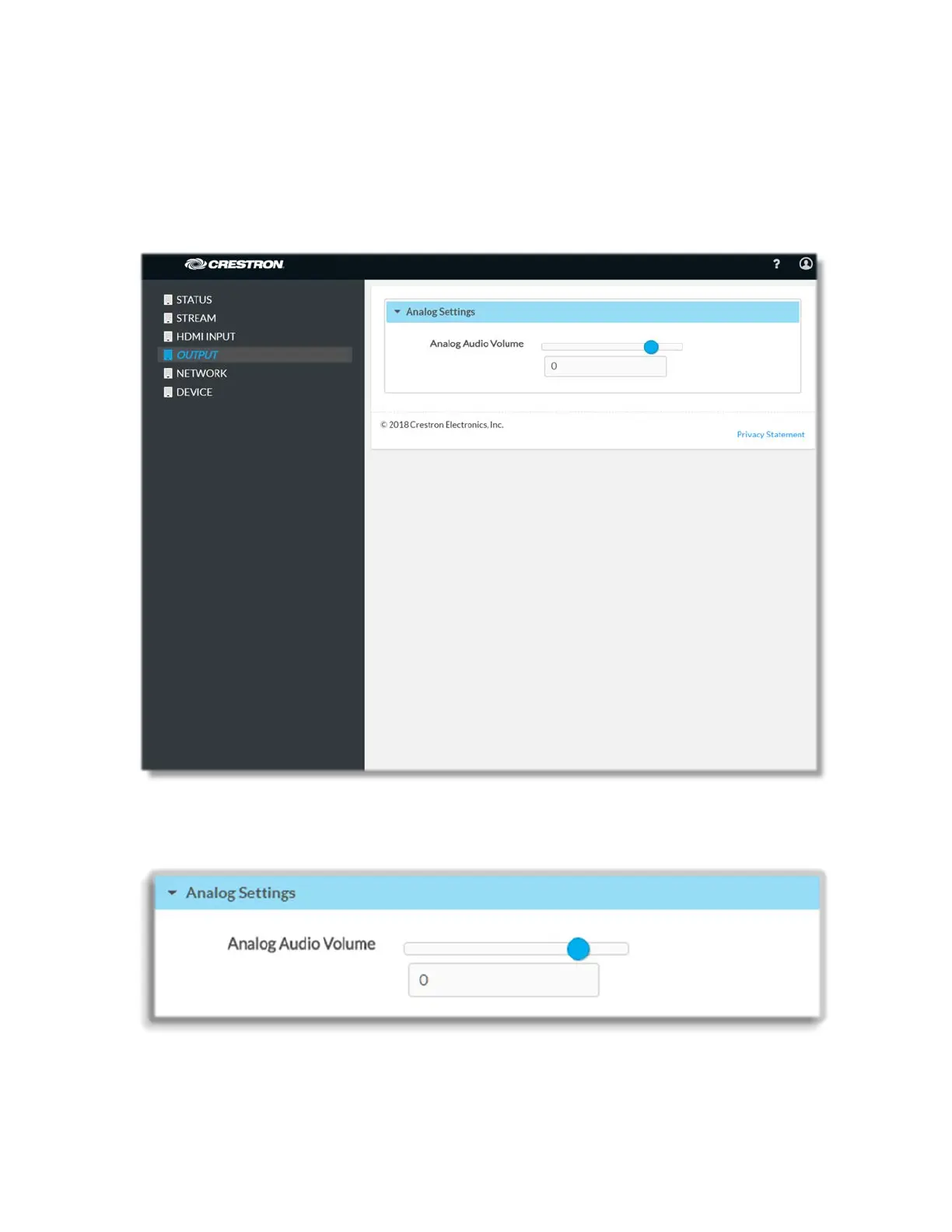 Adjust the volume of the analog audio by moving the Analog Audio Volume slider to