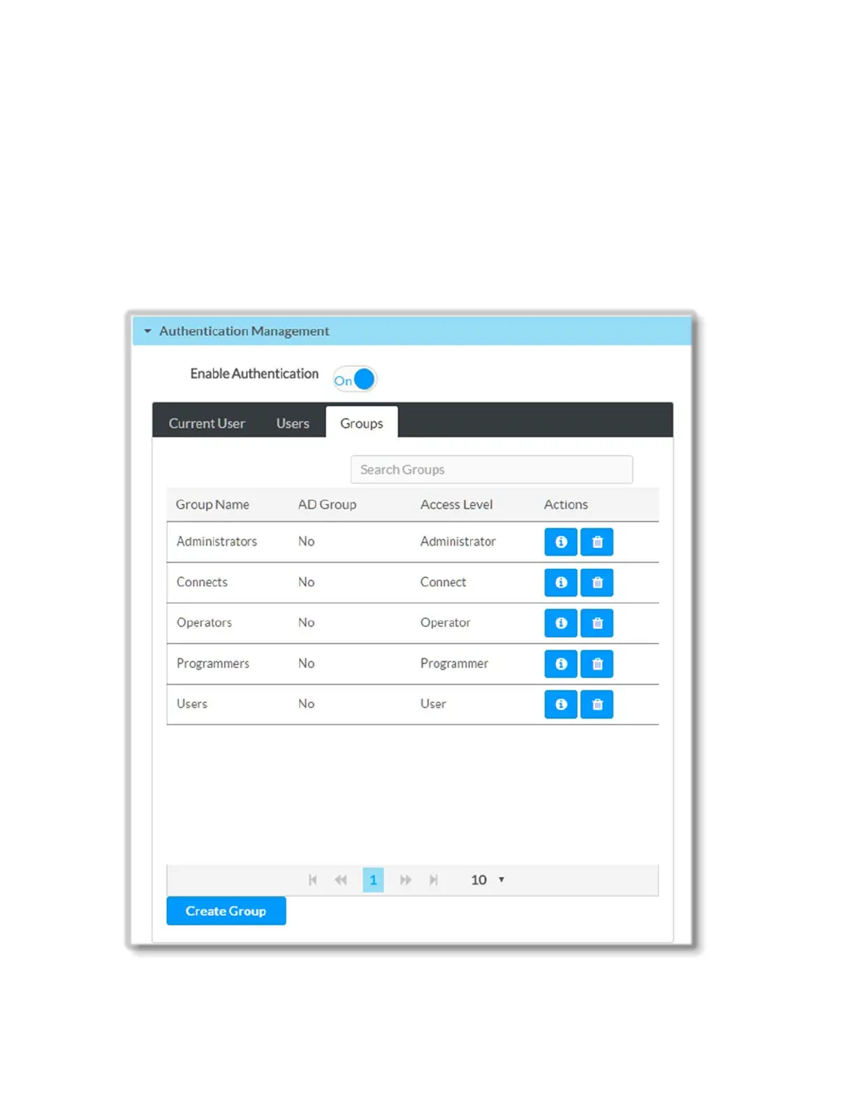 Click the Groups tab to view and edit group settings. The Groups tab can be used to