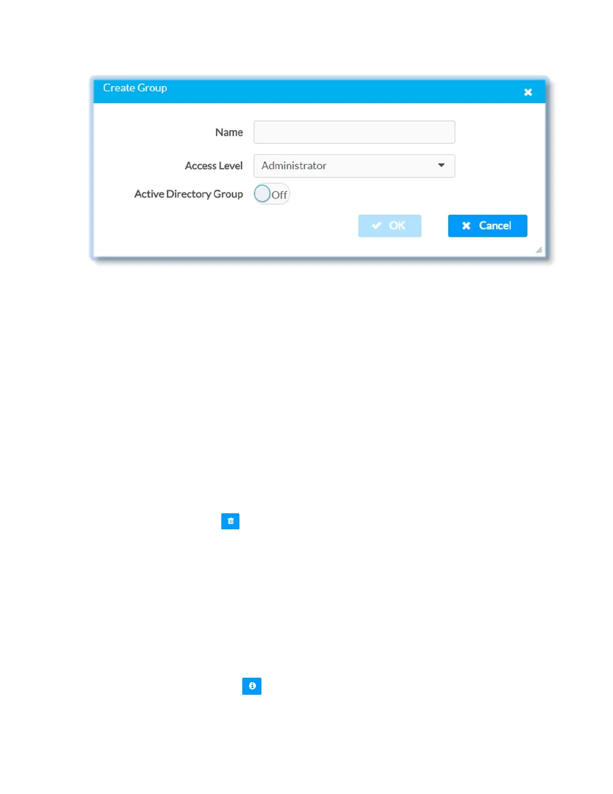 • Assign group access level by selecting a pre-defined access level (Administrator,