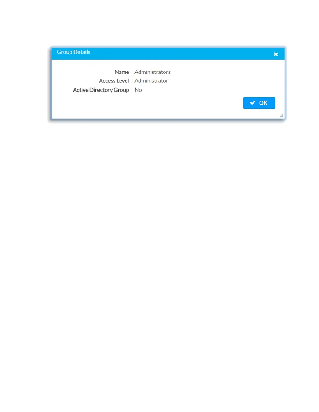 Click OK to close the Group Details dialog and to return to the Authentication