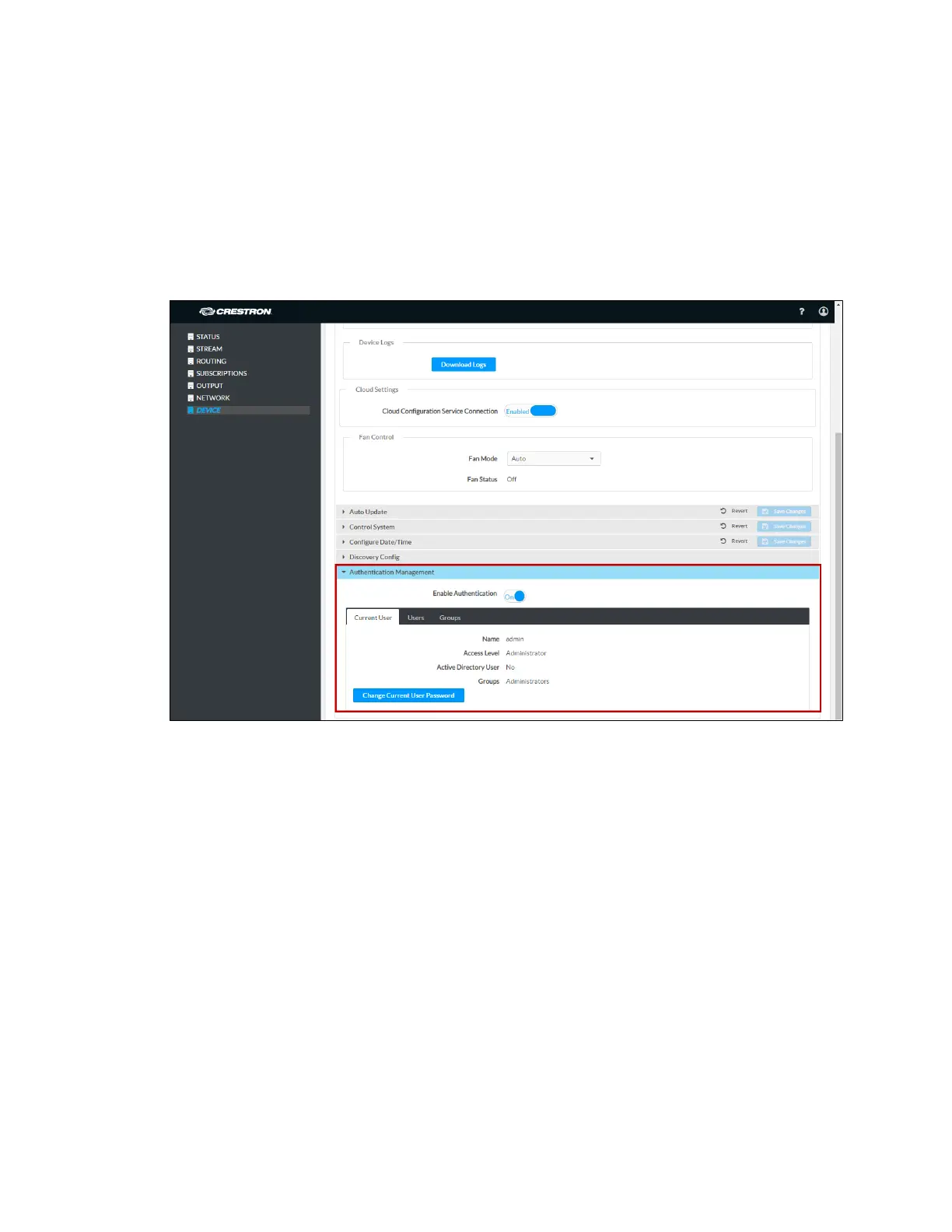 Device Page – Authentication Management