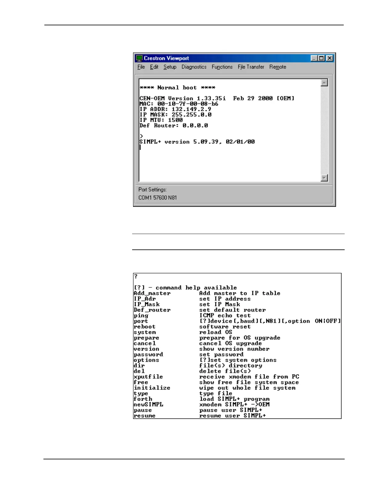 Enter a question mark (?) and depress ENTER to display the Main Menu, shown
