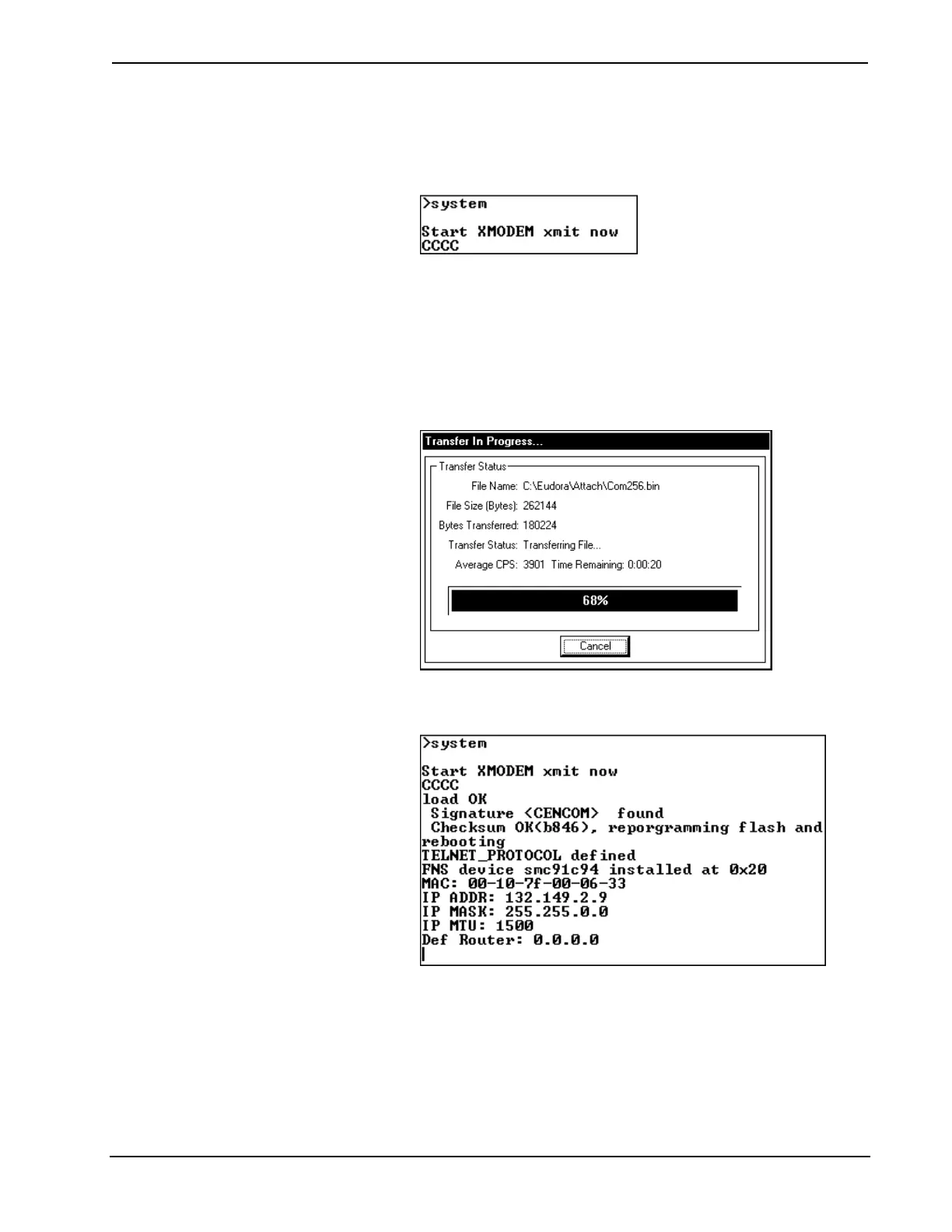 2 Viewport responds with “Start XMODEM xmit now” on one line and