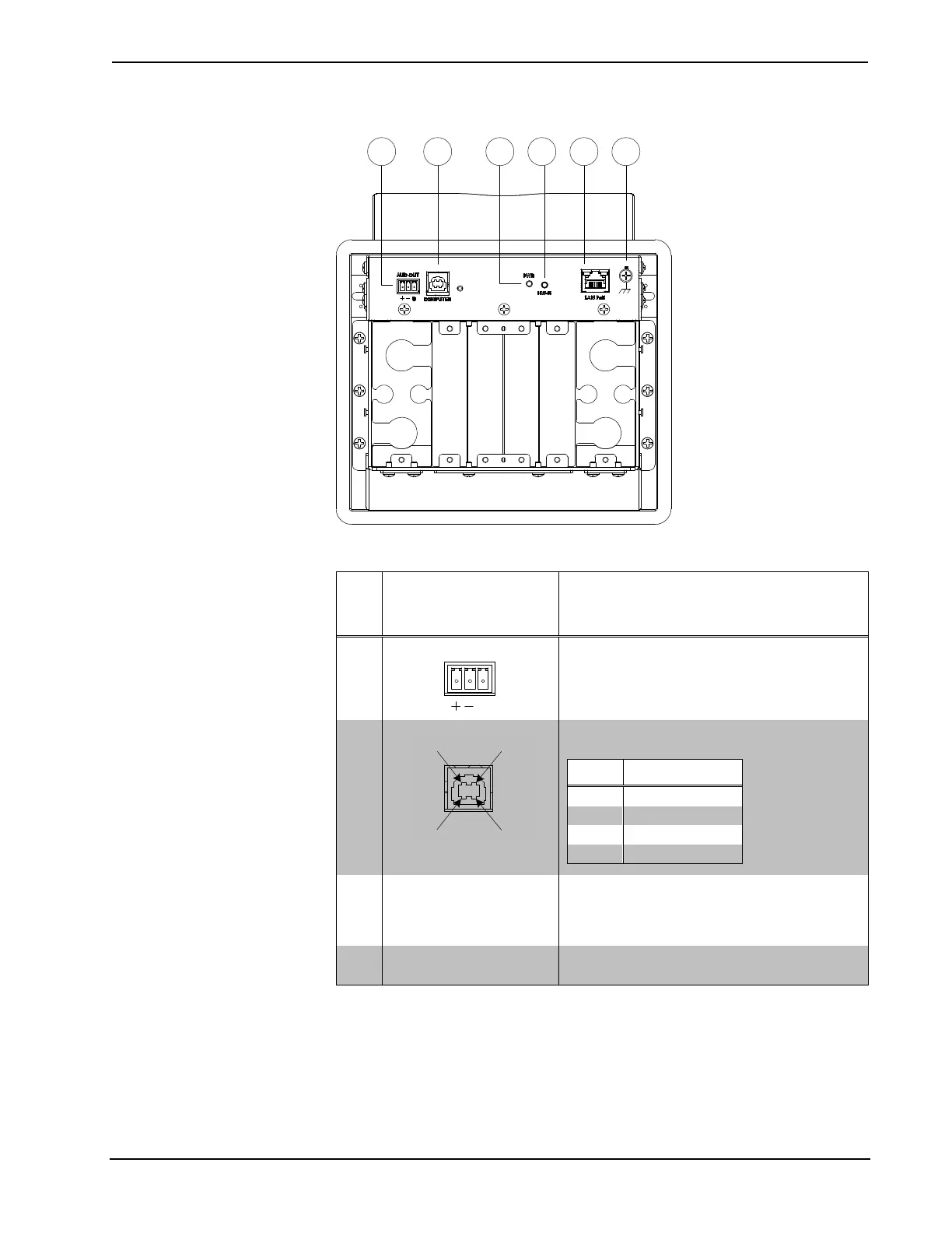 Balanced mono line level audio output;