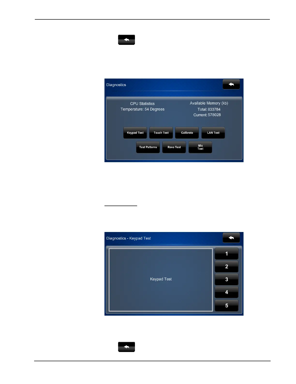 On the “Diagnostics” menu, touch Keypad Test to display the “Diagnostics –