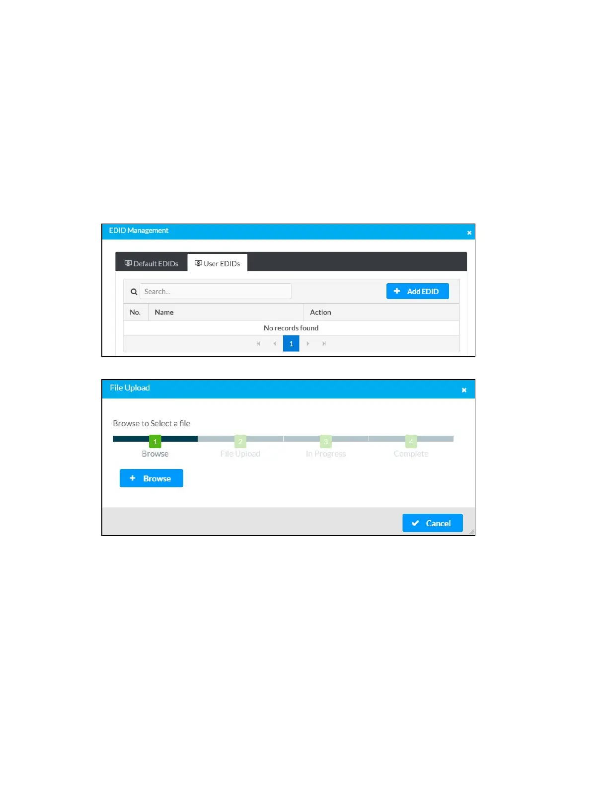 1. In the EDID Management dialog, click the User EDIDs tab and then click the + Add EDID